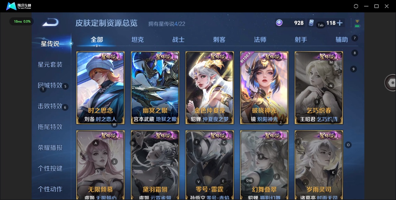 铠绛天战甲,刘备时之恋人,孙膑小动物乐团,赵云淬星耀世,干将莫邪久胜战神,典韦战鼓燎原,小乔音你心动,李信一念神魔,孙尚香音你闪耀,孙策末日机甲,达摩黄金狮子座,王昭君乞巧织情,露娜霜月吟,后羿千劫归真,庄周牧神诗旅,镜炽阳神光,周瑜音你心动,公孙离记忆之芯,杨玉环星之鸣奏,亚连落雪白狼,宫本武藏惊梅引,貂蝉猫影幻舞,裴擒虎祥瑞亨通,艾琳觅芳踪,西施游龙清影,张良黄金白羊座,曜云鹰飞将,马超无双飞将,百里守约碎云,李元芳飞鸢探春,澜逐花归海,蔡文姬花朝如约,虞姬云霓雀翎,云缨幻光神枪