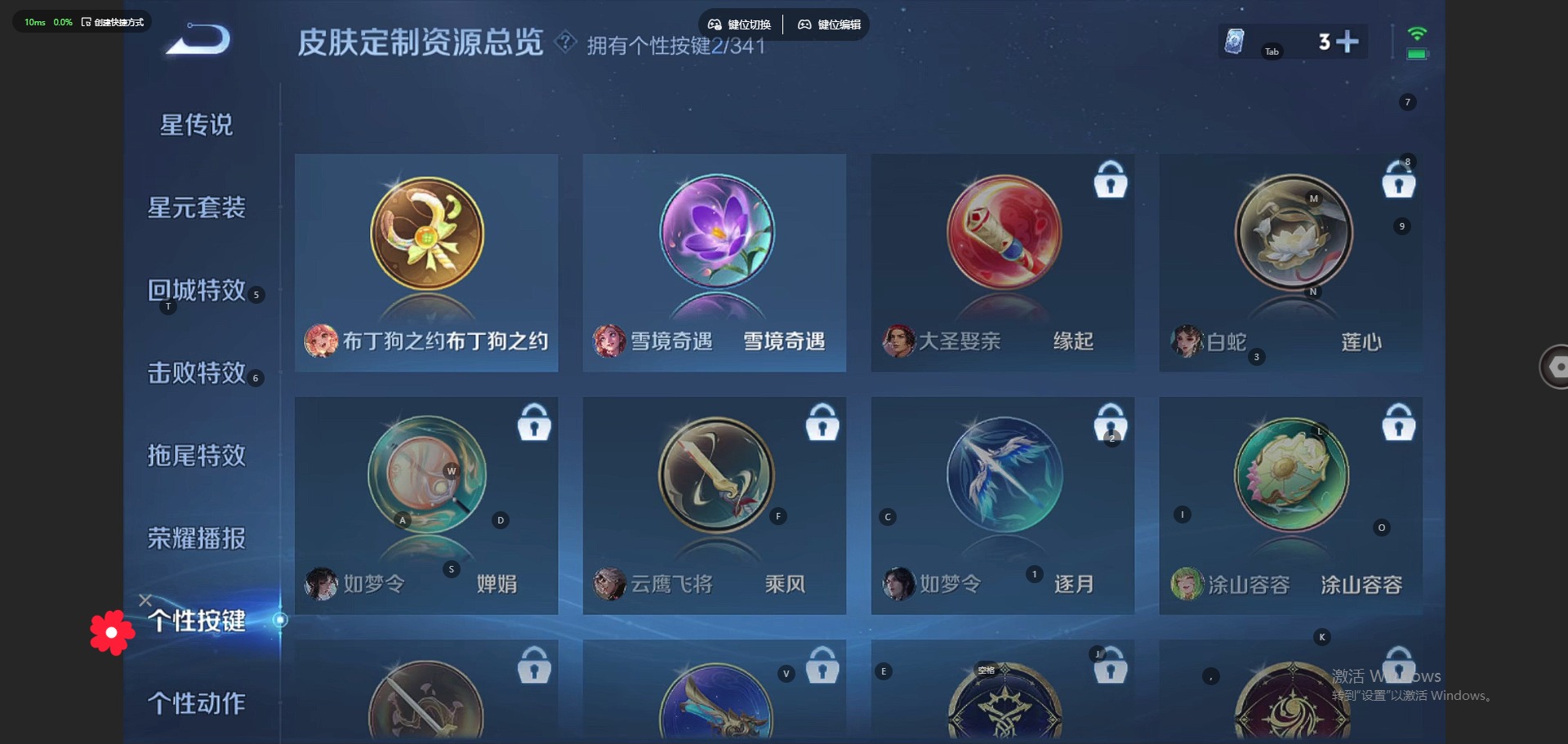 曹操天狼征服者,赵云龙胆,干将莫邪冰霜恋舞曲,后羿如梦令,露娜一生所爱,裴擒虎李小龙,裴擒虎天狼狩猎者,上官婉儿梁祝,上官婉儿天狼绘梦者,孙悟空大圣娶亲,孙悟空至尊宝,百里守约朱雀志