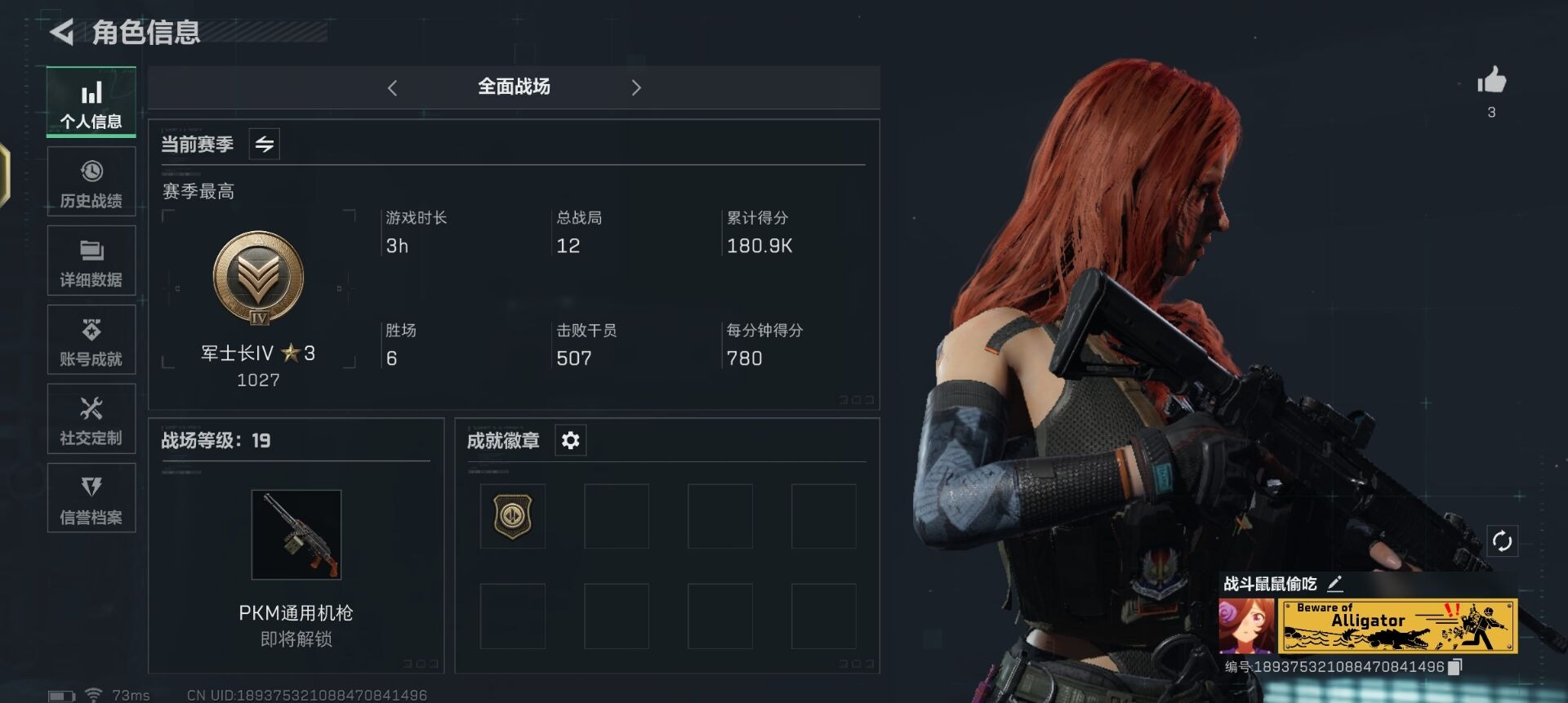 - PX_2095186-时装数: 233 载具数: 2 枪械数: 309 战备数: 199 神级装扮: 金蛇镇世-烛九(一级)热门装扮: 奇异狩猎者,梦幻火箭(新101),幻影战神,深海小丑鱼,宝贝奶油派,天使彩虹糖,梦魇先生,鹰眼刺客,粉色回忆,都市猎人,炙焰红王,冰霜白皇,童趣迷兔,星之彼岸,洛天依,初号机款机体服,霞光圣骑,寒光使者,垂柳戏鸭,恶魔喵喵,音爆索尼克,呆萌星弥,守护天翼,智耀战神