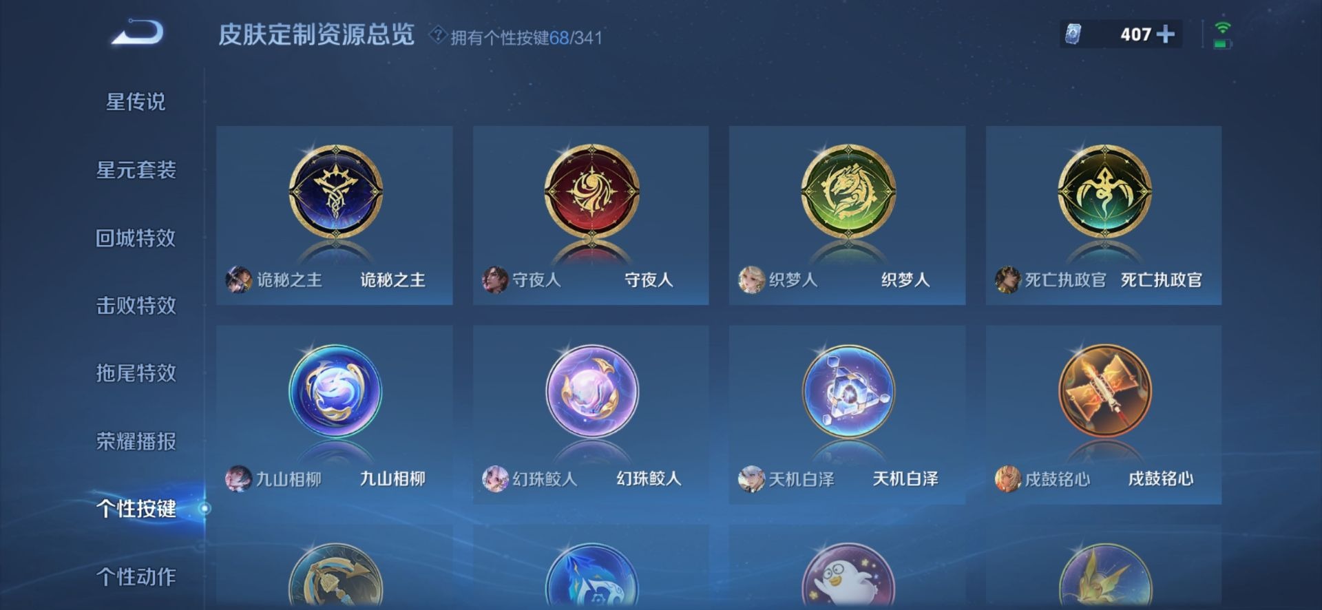 金蝉唐三藏,夏侯惇霜北刀,牛魔奔雷神使,露娜启示之音,露娜一生所爱,庄周云端筑梦师,诸葛亮时雨天司,司空震愿照·山河定,裴擒虎李小龙,上官婉儿梁祝,上官婉儿神器·万象笔,上官婉儿天狼绘梦者,花木兰默契交锋,马可波罗逐梦之星,孙悟空大圣娶亲,孙悟空至尊宝,韩信傲雪梅枪,墨子降魔,澜愿照·九州拓,虞姬愿照·岁时盈,嫦娥如梦令,王昭君凤凰于飞,王昭君映山客,大乔白鹤梁神女,哪吒逐梦之翼,铠青龙志,伽罗天狼溯光者,赵云百木心枪,孙膑天狼运算者,吕布御风骁将,后羿如梦令,后羿辉光之辰,兰陵王默契交锋,兰陵王影龙天霄,安琪拉魔法小厨娘,艾琳陌上桑,西施至美·乘鲤谣,桑启鸣野蒿,女娲愿照·千秋盛,百里玄策白虎志,赵云引擎之心,妲己时之彼端,妲己时之奇旅,妲己愿照·众生和,蔡文姬愿照·福禄聚,瑶山海·碧波行,娜可露露前尘镜,关羽冰锋战神