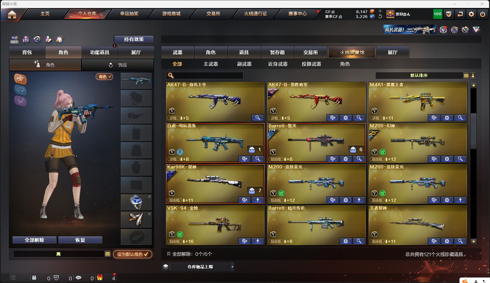 [11528915]可二次 可修改实名 排位资格:有 2王者武器 1炫金武器 110V武器 7V角色 31皮肤 可排位 武器:G36C-幻影,柯尔特-竞技荣光,擎天-竞技荣光,AK12-天启,炼狱-百战金芒,QBZ03-金色蔷薇,AK47-B-身先士卒,AK47-B-常胜将军,黑武士-锦绣游龙,Barrett-暗月传说,烟雾弹-竞技荣光,炫金千变,COP-堕天神,M200-竞技荣光,神圣爆裂者III,无影-神兵利器,闪光弹-雷暴,闪光弹-堕天神,闪光弹-雷霆,王者星神-觉醒版,云龙扇,Barrett-毁灭,王者之锋-觉醒版,死亡之眼,王者之击-觉醒版,闪光弹-云龙,雷霆之契,王者之灵-觉醒版,M4A1-黑骑士,COP 357-云龙,雷霆之锋,M4A1-堕天神,M4A1-再燃火线,VSK-94-金蚀,麒麟刺-百战金芒,黑骑士-海王,闪光弹-竞技荣光,斯泰尔-蝴蝶,幻灵之锋,烟雾弹-雷暴,高爆手雷-竞技荣光,王者之啸-觉醒版,高爆手雷-雷霆,高爆手雷-雷暴王者,斩神刀-雷暴,白虎-电玩蓝兔,匕首-幻能朋克,高爆手雷-堕天神,烟雾弹-雷霆,烟雾弹-堕天神,死神-雪域霜狐,麒麟刺-堕天神,高爆手雷-雷暴,机械迷城-穹宇,AK-47-猩红传说,龙啸-堕天神,屠龙,M4A1-雷神,AK47-B-战士,Kar98K-星神,轻型军用手斧-再燃火线,AK47-火麒麟,高爆手雷-云龙,高爆手雷-雷霆王者,M200-幻神,M4A1-雷霆王者-觉醒版,COP 357-幻灵,麒麟刺