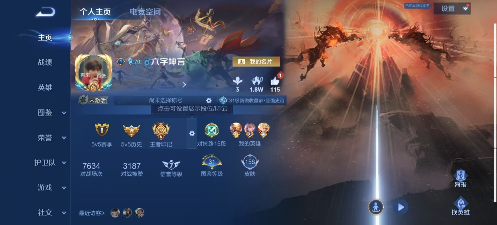 - [11912814]V8 1典藏 1无双 1珍品传说 29传说 124英雄 313皮肤 可修改实名 优质装备:全息碎影(猴子典藏),器灵·螭龙剑,怪盗基德,黄金射手座,云鹰飞将(小将军),黄金白羊座,久胜战神,末日机甲-孙尚香(绿蚂蚱),地狱火,零号·赤焰,淬星耀世,电玩·雷克斯,鹤羽星尊,妄想实况,澜逐花归海,涂山容容 传说皮:乘龙·问璇玑(孙尚香年限),乘龙·铭钟鼎(赵云年限),乘龙·淬吴钩(孙策年限),貂蝉曦玄引,典韦战鼓燎原,幻光神枪 珍宝阁皮:胡桃夹子,玩趣恶龙 限定皮:愿照·九州拓(澜年限),愿照·岁时盈(虞姬年限),愿照·山河定(司空震年限),逐霄战戟,鸣野蒿,至尊宝,傲雪梅枪,飞衡(韩信年限),诗剑行,无限倾心-虞姬,齐天大圣,怒海麟威,冰锋战神,武圣,梁祝,御风骁将(吕布年限),烈魂,岱宗(典韦年限),奔雷神使(牛魔年限),李小龙,逐梦之影,如梦令-后羿,孙行者,大圣娶亲,冰霜恋舞曲,美猴王,深海之息(深海大菠萝),山海·玄木吟(马可年限) 史诗皮:器灵·浮梦炉,绮世丹青,化蝶舞,谪仙醉月,怒海争锋,破空之剑,琥珀纪元伽罗,星界特工,百相守梦-黄忠,紫霞仙子,电玩小子(小书包),白龙吟,黄金分割率,特工魅影,千年之狐,江河有灵,魅语,百解令(蒙犽),高渐离燃音魔法,蒙恬荣光圣徽,白蛇,晚萤,电玩·爆裂旋风,百相守梦(刘备),百相守梦(关羽),龙骑士(小龙虾),末日机甲-吕布,猫狗日记-孙策,猫狗日记-大乔,乱世虎臣,节奏热浪,修罗,女仆咖啡,水果甜心,绅士熊喵,星夜王子,心灵骇客,德古拉伯爵,暗隐猎兽者,鬼剑武藏,暗渊魔法,心灵战警,乐园奇幻夜,天秀·启明,舞动绿茵,地狱岩魂,纤云弄巧,繁星吟游(呼啦呼啦),缤纷独角兽,乘风破浪,逐浪之夏,水晶猎龙者,曙光守护者,箭羽风息,金属风暴,原初追逐者,圣诞狂欢,圣诞恋歌,鹰眼统帅,魅力维加斯,黎明之约,赏金猎手,天秀·音浪,未来纪元-赵云
