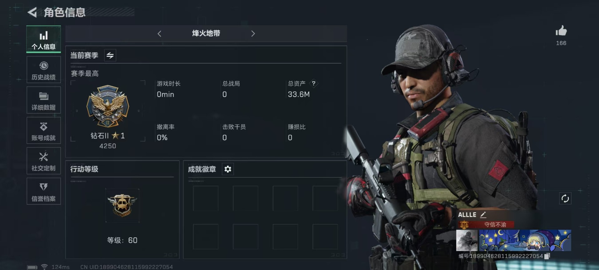 - [11315422]总资产:73.4M 1干员外观 8传说枪械 哈夫币:8.433K 高级安全箱(9.17到期) 可二次 可修改实名 烽火地带段位:黑鹰 全面战场段位:列兵 传说武器皮肤:M4A1突击步枪-阿米娅,CAR-15突击步枪-阿米娅,复合弓-黑-天际线,AWM狙击步枪-捞点薯条,腾龙突击步枪-捞点薯条,93R-捞点薯条,勇士冲锋枪-能天使-午夜邮差,725双管霰弹枪-送葬人-无题密令 史诗武器皮肤:M16A4突击步枪-竞赛选手,PKM通用机枪-荒野求生,MP5冲锋枪-深海恐惧,SR-3M紧凑突击步枪-荒野求生,SV-98狙击步枪-林中猎手,SVD狙击步枪-荒野求生,M250通用机枪-囚徒,SV-98狙击步枪-囚徒,SCAR-H战斗步枪-囚徒,腾龙突击步枪-无垢,MP7冲锋枪-无垢,PSG-1射手步枪-无垢,QBZ95-1突击步枪-曙光,AS Val突击步枪-刀锋,M700狙击步枪-竞技风 干员外观:蜂医-送葬人·无题密令(S5)