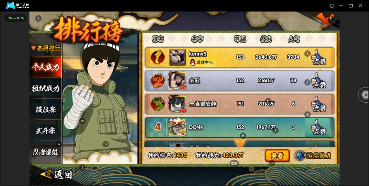 - 火影忍者手游/QQ/苹果QQ1-100区/1区李洛克