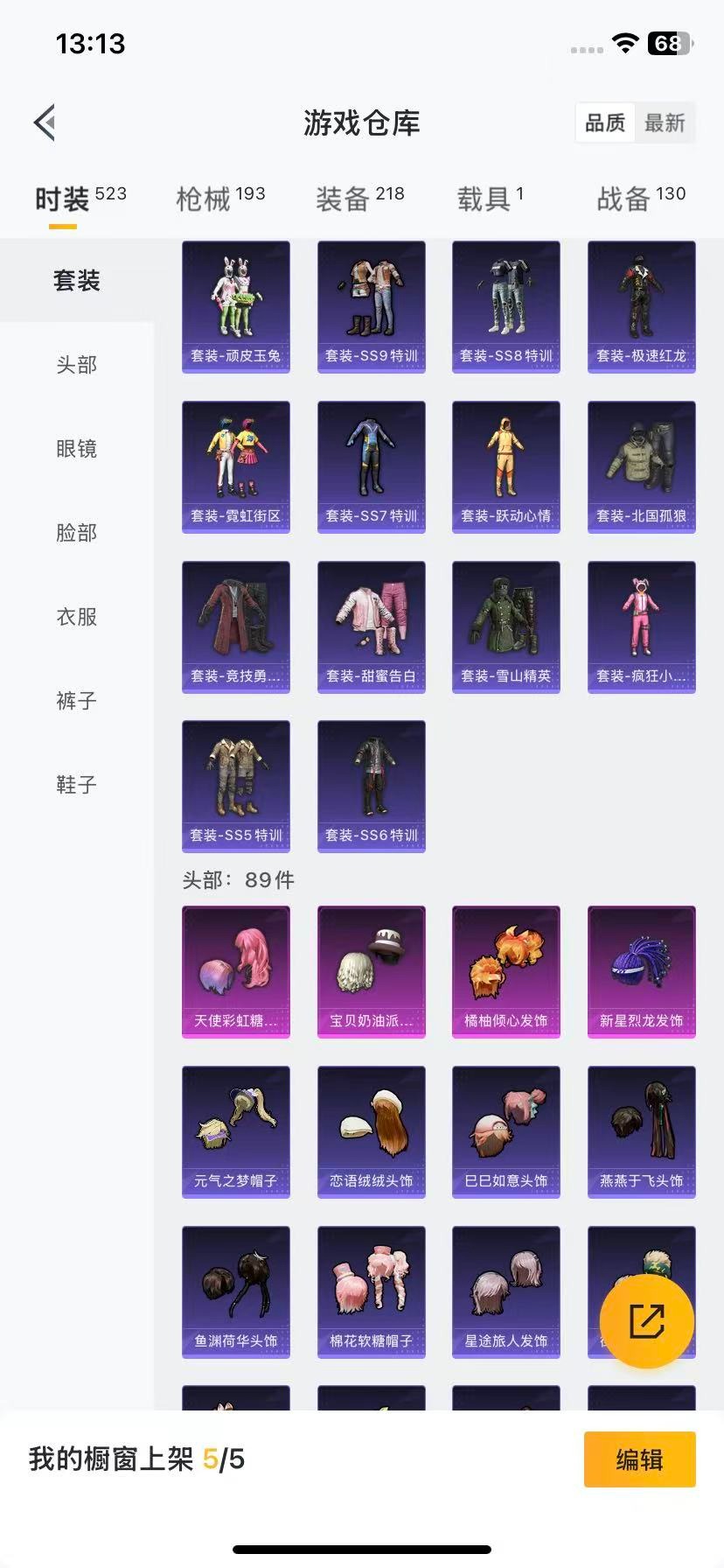 [11570215]5粉装 3特效枪 1载具 10印记 可二次 可修改实名 优质装备:宝马M4(圣保罗黄),AKM炫紫旋律,宝贝奶油派,天使彩虹糖,新星烈龙(小白龙),Vector环太平洋,七级Vector-环太平洋,七级AKM-炫紫旋律,千金淑猫,Kar98K-巳巳如意 热门装扮:橘柚倾心,软萌银虎,鹰眼刺客,梦魇先生,浪漫波比 五级特效枪:五级Kar98K-巳巳如意 紫色装扮:田园牧歌,轻风白浪,SS22特训,SS23特训,娇憨猪猪,萌趣咩咩,SS21特训,SS31特训套装,SS5特训,人气偶像,军械专家,冰川特警,北国孤狼,SS30特训套装,SS20特训,青春冒险家,潮流游乐家,SS15特训,时空追击者,暴风机械师,SS16特训,SS13特训,诡谋托雷基亚,治愈之星,科技之星,SS14特训,萌趣颜团子,音速流光,SS19特训,甜心亚梦,虚音幻奏,瑞龙福将,团圆交子,SS17特训,SS18特训,酒红色名流,野性战心,长空猛禽,迅猛虎鲸,雪山精英,雷霆特警,霓虹街区,缤纷果语,虎虎生威吉莉,跃动心情,骑行爱好者,麻辣教官,黄色名流,黎明保卫者,龟仙人,龙魂突击队,蝶变,极速红龙,格斗先锋,清新柠檬,滨海假日,完美偶像,帅气教官,幻世战舞者,战地菁英,湖蓝色名流,滨海厨神,绮丽涂鸦,疯狂小兔子,甜蜜告白,福星高照,竞技勇士朋克,牛气冲天,灰色格斗者,牛气满满,猛禽,特战装甲,狂沙舞者,雏菊兔兔,萝兰蝴蝶,SS29特训,星途旅人,SS28特训,鱼渊荷华,玉兔迎春,燕燕于飞,巳巳如意,风玲,都市丽猫,青团波波,糖糖葫芦,棉花软糖,竞技名士,摩登魅猫,街头风暴,惊鸿侠骨,神气柴柴,懵萌河马,SS24特训(SS24特训套装),SS25特训,锦衣飞扬,焰鹰斗篷,幻羽潜行,幽夜迷踪,SS27特训,明鸳圣池,金羽特工,浪漫天命,SS26特训,SS6特训,SS7特训,顽皮玉兔,恶魔宝贝,SS8特训,朱雀圣者,原初圣火,逆风勇士,SS12特训,SS9特训,舞夜骑士,风华少年志,白月香洋装,SS10特训,暗夜契约,机械英豪,机械征服者,SS11特训,海洋之心,SS32特训服(SS32特训套装),青玉碎影,恋语绒绒,漫步者,冰冻风暴,旷野奇兵,冷血极客,光之冒险 优质战备:精灵梦叶罗丽降落伞,千金淑猫降落伞,樱桃泡泡降落伞,青空秋雨降落伞,环太平洋降落伞,炫光之旅降落伞,百万伏特降落伞,甜心宝贝降落伞