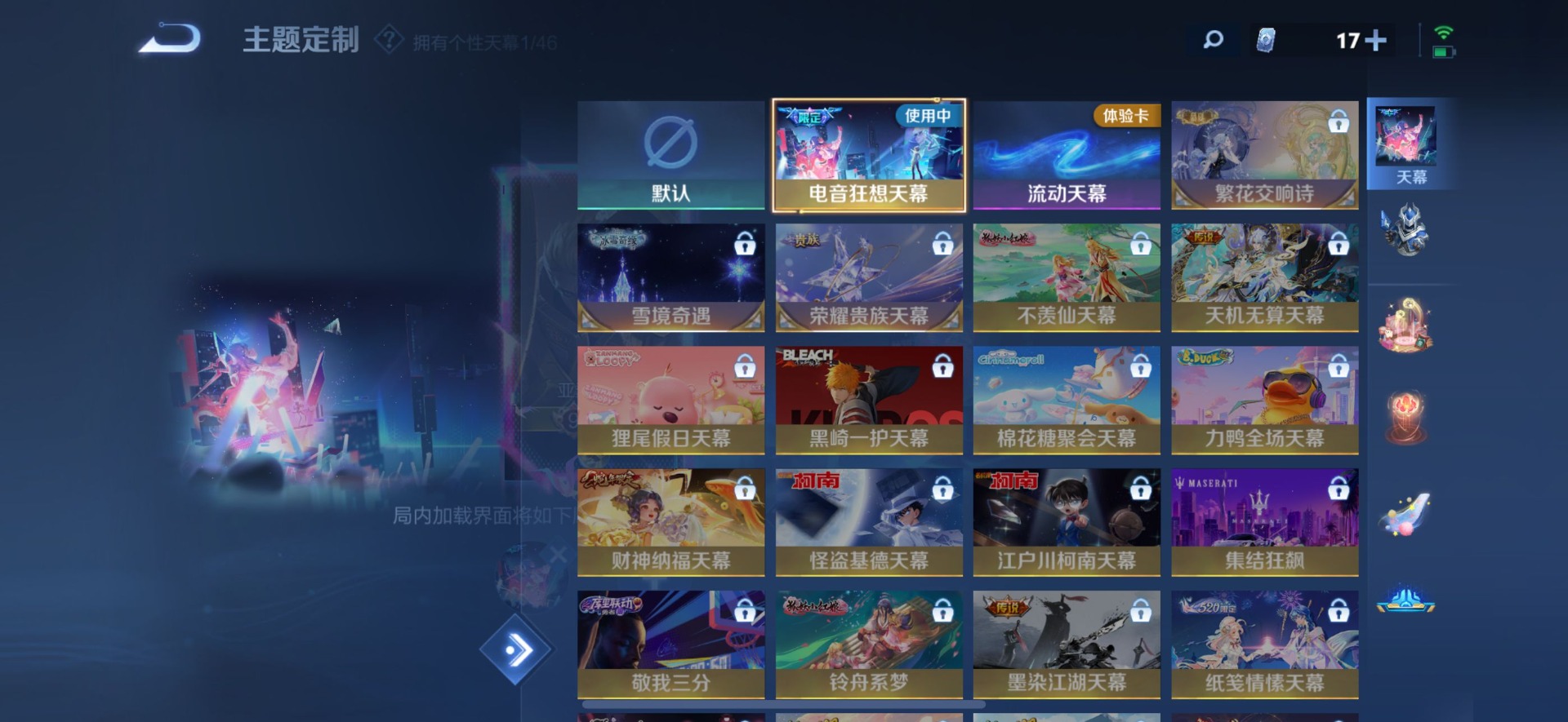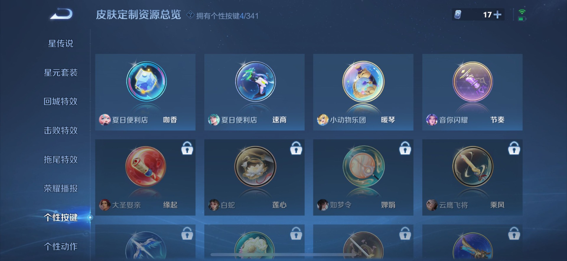 刘邦德古拉伯爵,铠曙光守护者,曹操幽灵船长,小乔缤纷独角兽,孙尚香时之恋人,不知火舞魅语,海月浮梦罗烟,鲁班七号电玩小子,吕布圣诞狂欢,刘禅电玩·爆裂旋风,刘禅绅士熊喵,宫本武藏鬼剑武藏,公孙离无限星赏官,李白千年之狐,安琪拉心灵骇客,安琪拉乘龙·聚宝船,白起星夜王子,西施诗语江南,嬴政摇滚巨星,嬴政暗夜贵公子,程咬金功夫厨神,墨子龙骑士,墨子金属风暴,蔡文姬舞动绿茵,王昭君偶像歌手,嫦娥拒霜思