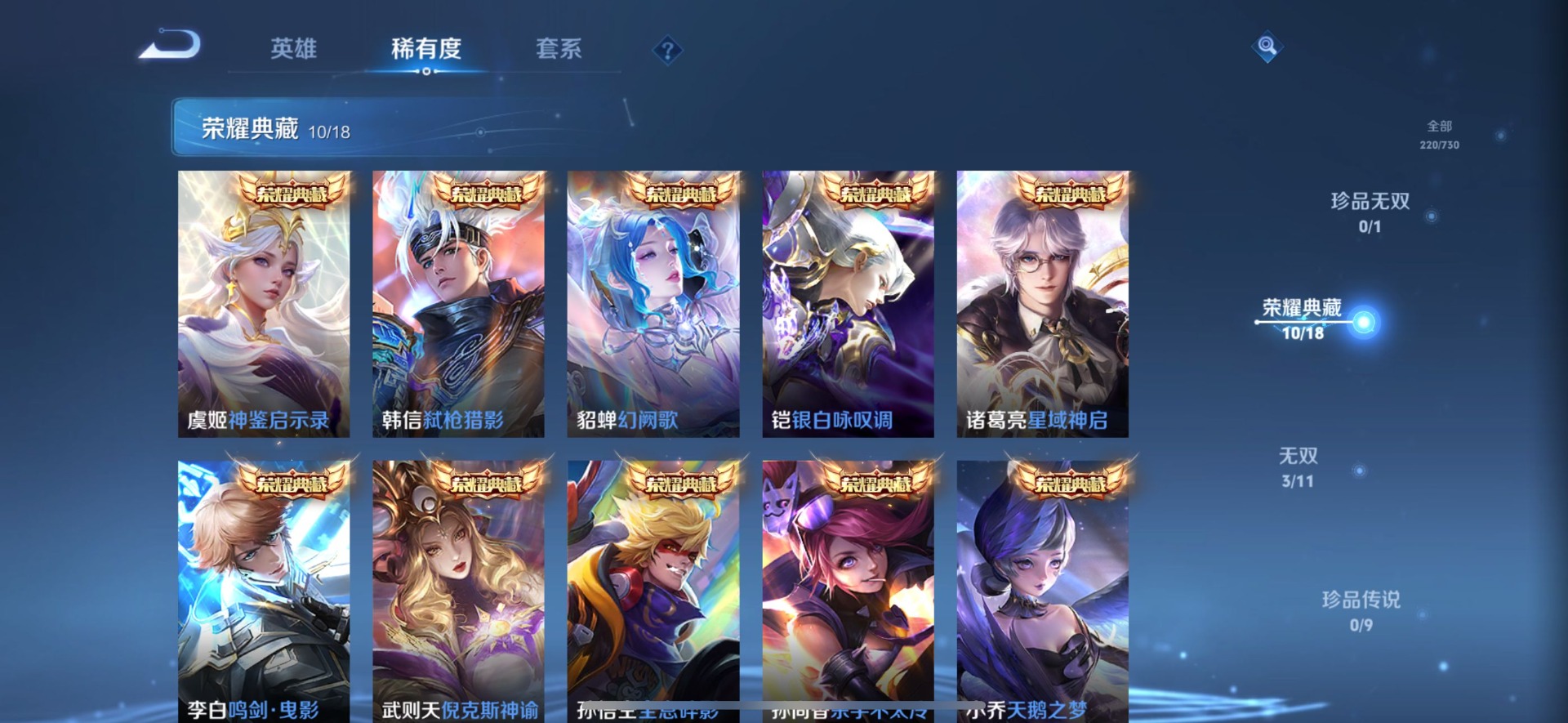 铠银白咏叹调,小乔天鹅之梦,孙尚香杀手不太冷,武则天倪克斯神谕,诸葛亮星域神启,李白鸣剑·曳影,孙悟空全息碎影,韩信弑枪猎影,虞姬神鉴启示录,貂蝉幻阙歌