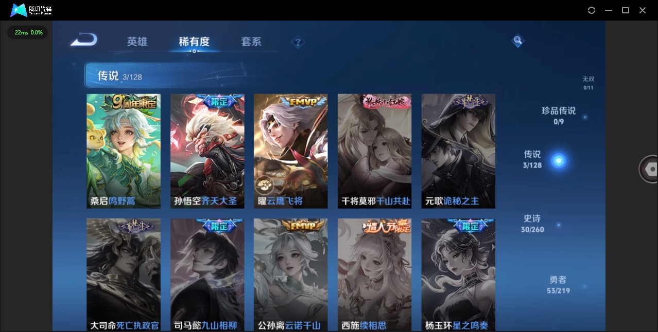 [11596672]V7 3传说 122英雄 126皮肤 可修改实名 优质装备:云鹰飞将(小将军) 珍宝阁皮:玩趣恶龙 限定皮:鸣野蒿,飞衡(韩信年限),高山流水,齐天大圣,梁祝,龙胆,李小龙,孙行者 史诗皮:化蝶舞,特工魅影,江河有灵,偶像歌手,晚萤,乱世虎臣,节奏热浪,修罗,水果甜心,天才门将,暗隐猎兽者,幽灵船长,纤云弄巧,逐浪之夏,热力回旋,金属风暴,圣诞狂欢,鹰眼统帅,赏金猎手