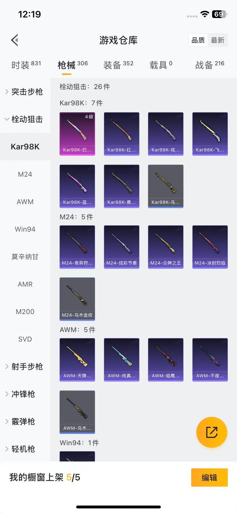 AKM-奇异狩猎者,M762-奇异狩猎者,M762-瑞龙福将,M24-奇异狩猎者,S686-奇异狩猎者,M249-古堡领主