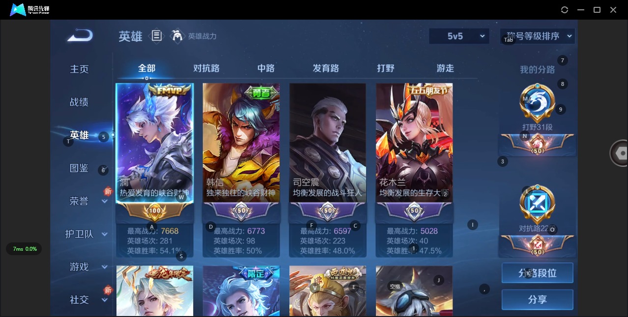 - [11688407]V7 8传说 125英雄 249皮肤 可修改实名 优质装备:末日机甲-孙尚香(绿蚂蚱),乞巧织情,山海·炽霜斩(李信年限),山海·琳琅生(小乔年限),炽翼辉光(娃娃菜牛角包) 珍宝阁皮:蔷薇恋人,女武神 限定皮:逐霄战戟,鸣野蒿,至尊宝,凤求凰(白切鸡),山海·碧波行(瑶年限),遇见飞天,高山流水,五谷丰年,冰锋战神,游园惊梦,梁祝,李小龙,猪悟能,冰霜恋舞曲,蜜橘之夏,时之祈愿-瑶(瑶传限),山海·玄木吟(马可年限) 史诗皮:化蝶舞,紫霞仙子,苍穹之光,电玩小子(小书包),千年之狐,魅语,晚萤,节奏热浪,女仆咖啡,摇滚巨星,水果甜心,绅士熊喵,天才门将,星夜王子,心灵骇客,功夫厨神,暗隐猎兽者,幽灵船长,鬼剑武藏,心灵战警,舞动绿茵,纤云弄巧,繁星吟游(呼啦呼啦),拒霜思,缤纷独角兽,乘风破浪,逐浪之夏,水晶猎龙者,金属风暴,原初追逐者,圣诞狂欢,圣诞恋歌,鹰眼统帅,王者之锤,魅力维加斯,黎明之约,无心