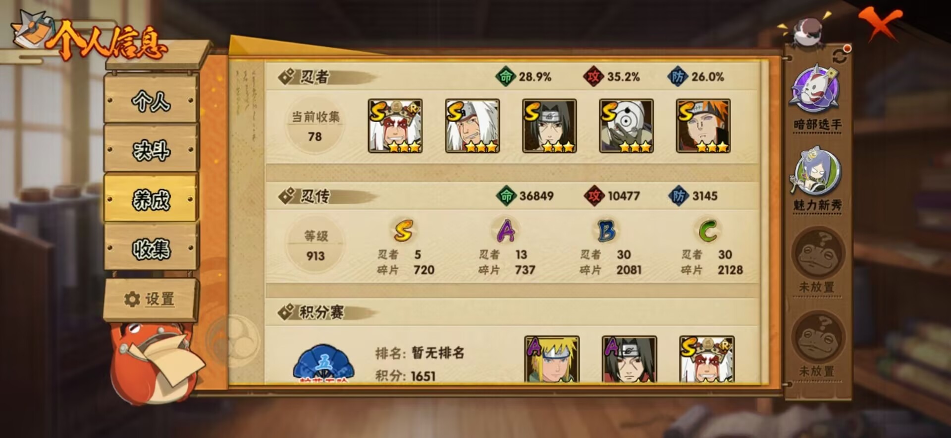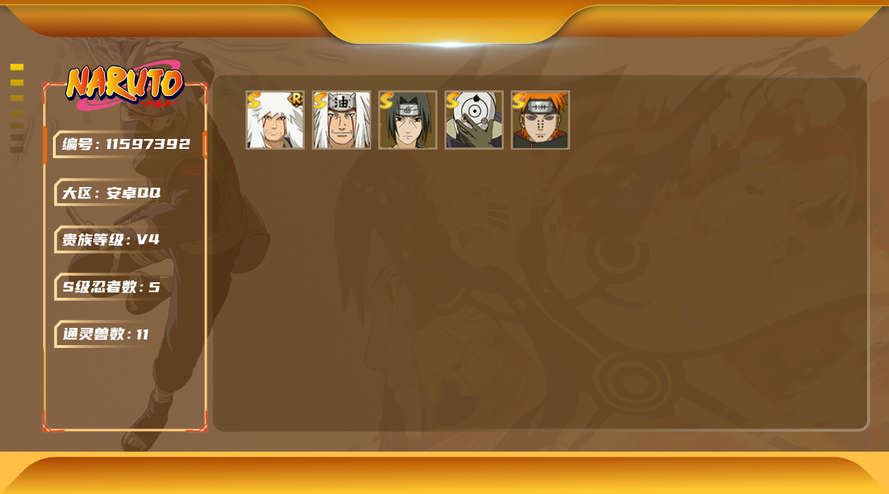 [11597392]V4 5S忍 13A忍 11通灵 317.6W战力 可二次 可修改实名 优质装备:“宇智波斑” 「白面具」 S级忍者:自来也 「舞之豪杰」,宇智波鼬 「须佐能乎」,佩恩「天道」,自来也