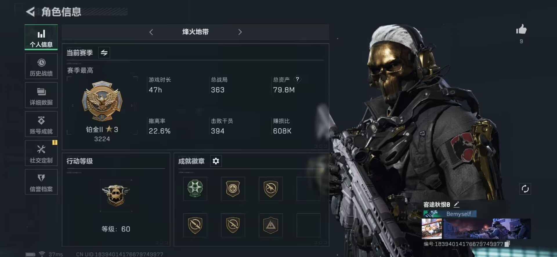 [11598347]总资产:79.8 1干员外观 13传说枪械 高级安全箱(2×3)9.15号到期 可二次 可修改实名 烽火地带段位:铂金 全面战场段位:上等兵 哈夫币:36.714 传说武器皮肤:SR-25射手步枪-水墨云图,SCAR-H战斗步枪-铁艺苍穹,SMG45冲锋枪-骑士,AK-12突击步枪-夜鹰,SR-3M紧凑突击步枪-特斯拉线圈,AK-12突击步枪-特斯拉线圈,复合弓-黑-天际线,CAR-15突击步枪-阿米娅,M4A1突击步枪-阿米娅,725双管霰弹枪-送葬人-无题密令,M4A1突击步枪-蚀金玫瑰,CAR-15突击步枪-黑鹰坠落,UZI冲锋枪-特斯拉线圈 史诗武器皮肤:M1014霰弹枪-潜袭者,SR-3M紧凑突击步枪-英雄,QBZ95-1突击步枪-ACE,M4A1突击步枪-特勤执行,AUG突击步枪-特勤执行,Vector冲锋枪-红色彗星,PTR-32战斗步枪-ACE,SKS射手步枪-ACE,AUG突击步枪-蝮蛇,M700狙击步枪-蝮蛇,PKM通用机枪-蝮蛇,G3战斗步枪-战场英杰,SR-25射手步枪-尖端治疗,PKM通用机枪-荒野求生,AS Val突击步枪-尖端治疗,M700狙击步枪-守夜人,SG552突击步枪-尖端治疗,Ash-12战斗步枪-守夜人,MP5冲锋枪-深海恐惧,SG552突击步枪-深海恐惧,AKM突击步枪-林中猎手,.357左轮-幸运时刻,M16A4突击步枪-竞赛选手,PKM通用机枪-守夜人,M1014霰弹枪-林中猎手,SV-98狙击步枪-林中猎手,PSG-1射手步枪-无垢,AS Val突击步枪-典狱官,M250通用机枪-囚徒,SCAR-H战斗步枪-囚徒,QBZ95-1突击步枪-曙光,Vector冲锋枪-阿萨拉文明,SVD狙击步枪-阿萨拉工艺,S12K霰弹枪-曙光,PKM通用机枪-英雄,M14射手步枪-黑鹰坠落,M700狙击步枪-竞技风,AUG突击步枪-战术迷彩 干员外观:红狼-蚀金玫瑰