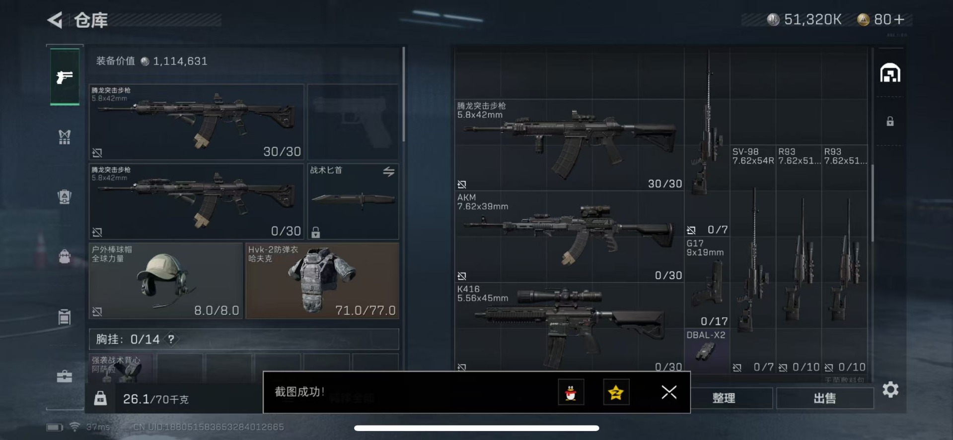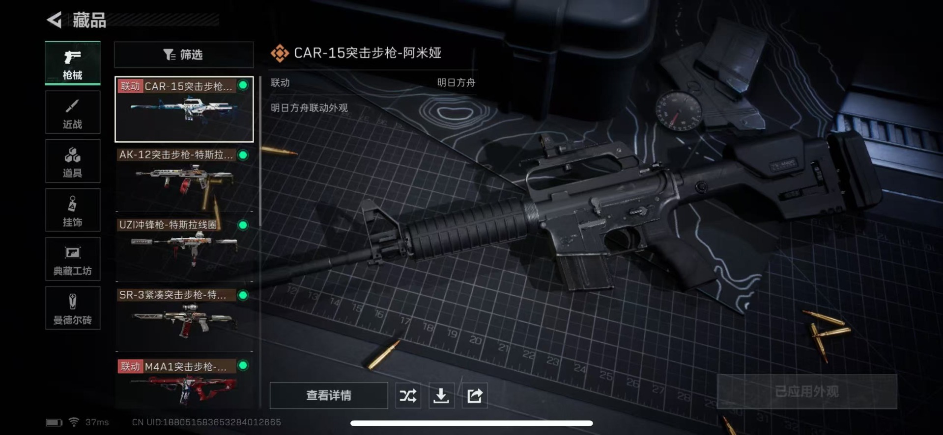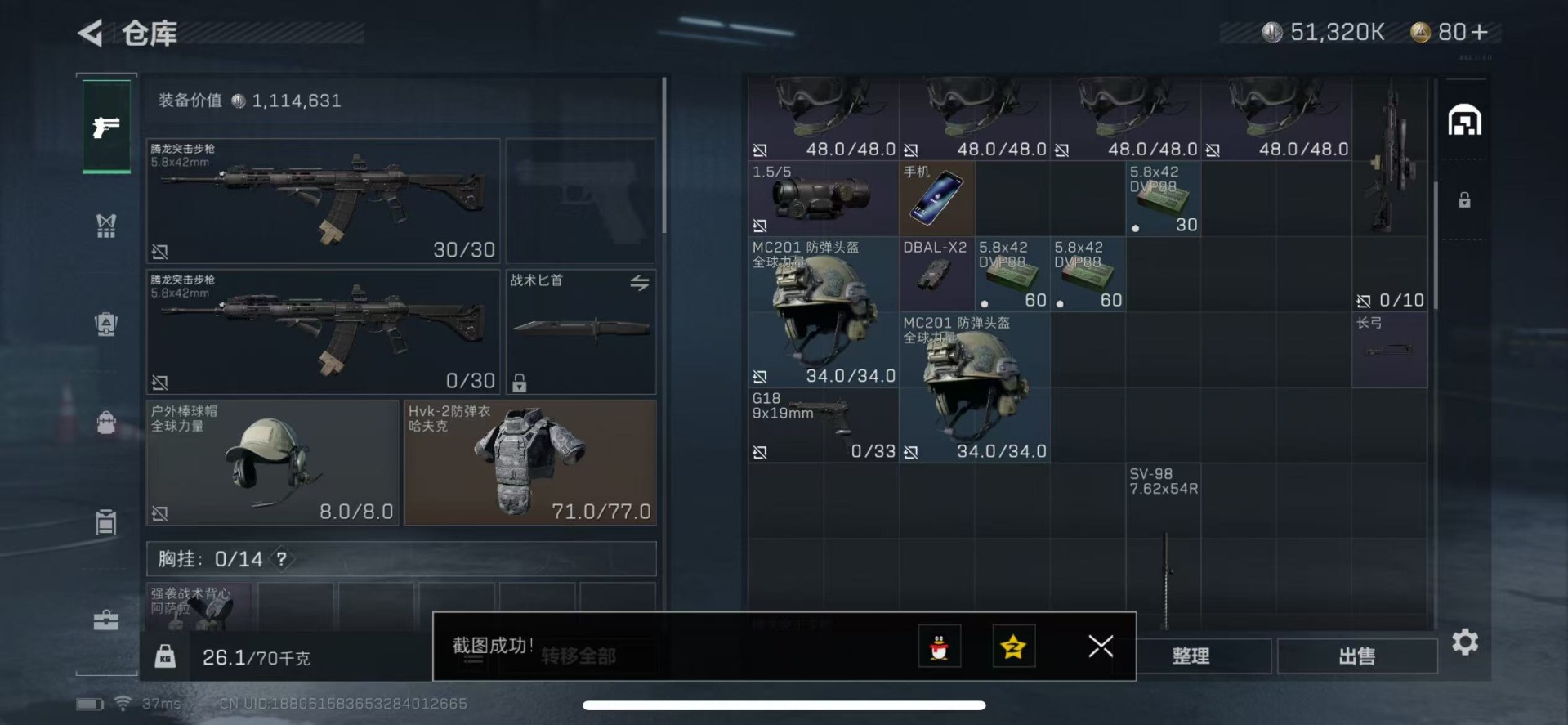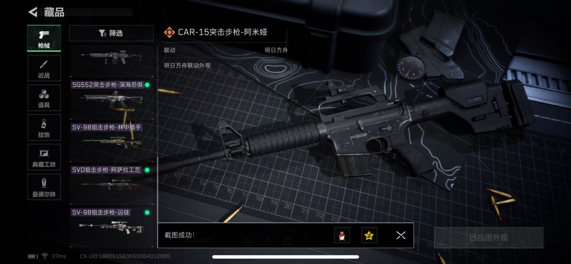 - [11572000]总资产:138.5M 1干员外观 11传说枪械 哈夫币:44.557K 进阶安全箱(9.17到期) 可二次 可修改实名 烽火地带段位:铂金 全面战场段位:无段位 传说武器皮肤:SR-25射手步枪-水墨云图,SCAR-H战斗步枪-铁艺苍穹,SMG45冲锋枪-骑士,AWM狙击步枪-捞点薯条,腾龙突击步枪-捞点薯条,93R-捞点薯条,勇士冲锋枪-能天使-午夜邮差,Vector冲锋枪-能天使-午夜邮差,CAR-15突击步枪-阿米娅,AK-12突击步枪-夜鹰,M4A1突击步枪-蚀金玫瑰 干员外观:红狼-蚀金玫瑰