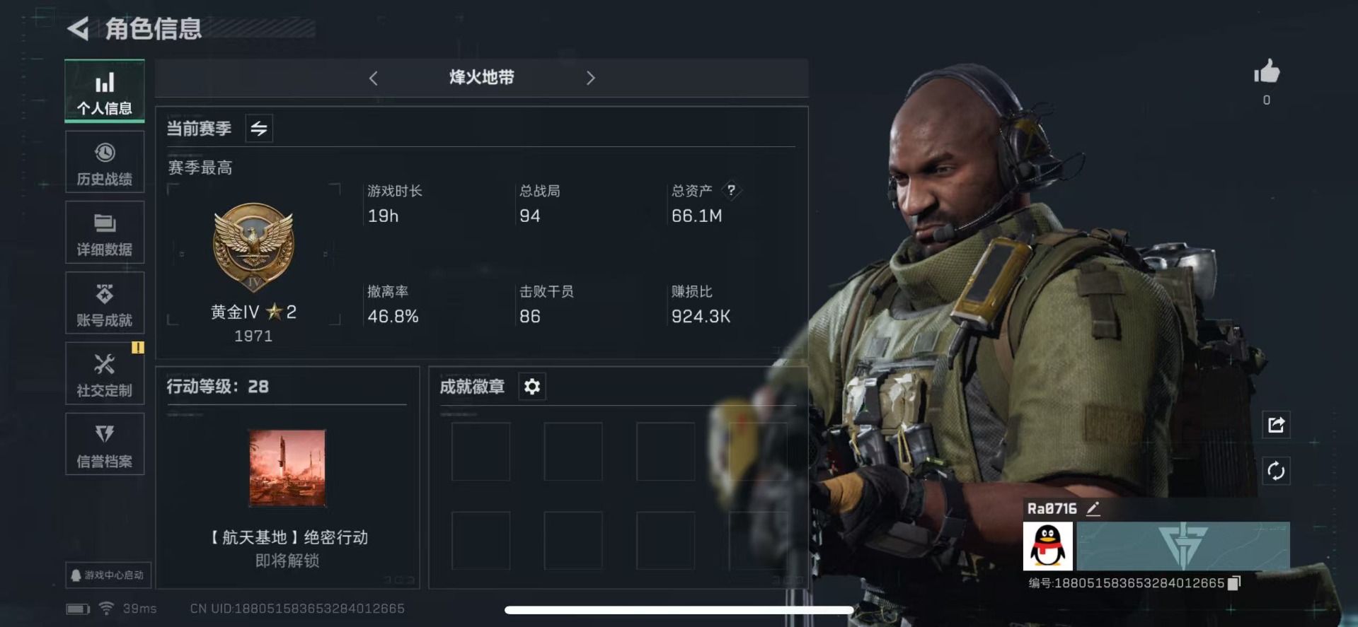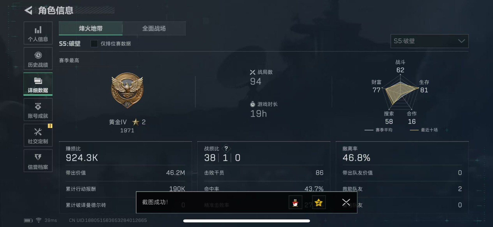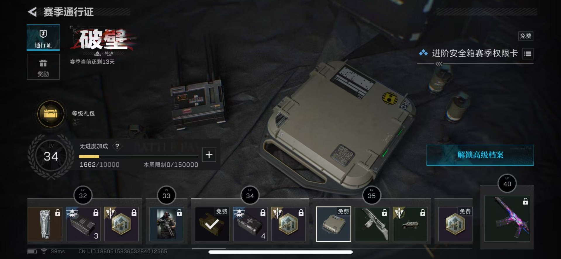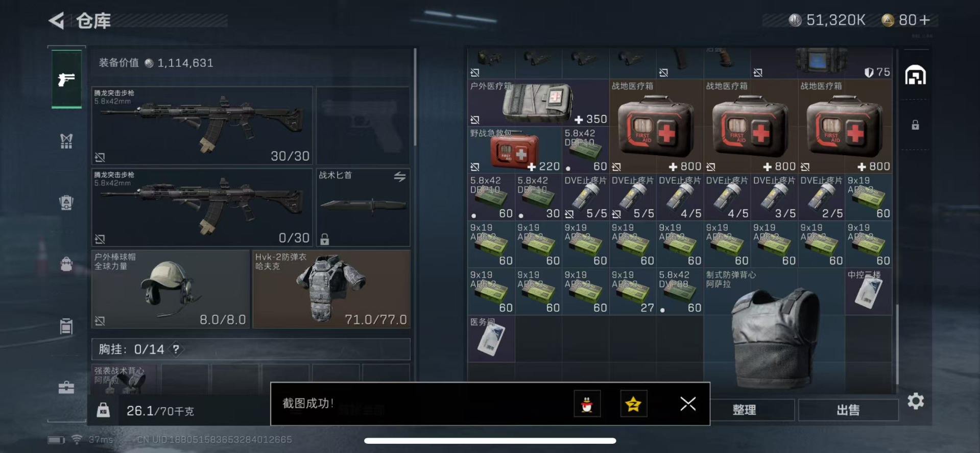 - [11572000]总资产:138.5M 1干员外观 11传说枪械 哈夫币:44.557K 进阶安全箱(9.17到期) 可二次 可修改实名 烽火地带段位:铂金 全面战场段位:无段位 传说武器皮肤:SR-25射手步枪-水墨云图,SCAR-H战斗步枪-铁艺苍穹,SMG45冲锋枪-骑士,AWM狙击步枪-捞点薯条,腾龙突击步枪-捞点薯条,93R-捞点薯条,勇士冲锋枪-能天使-午夜邮差,Vector冲锋枪-能天使-午夜邮差,CAR-15突击步枪-阿米娅,AK-12突击步枪-夜鹰,M4A1突击步枪-蚀金玫瑰 干员外观:红狼-蚀金玫瑰