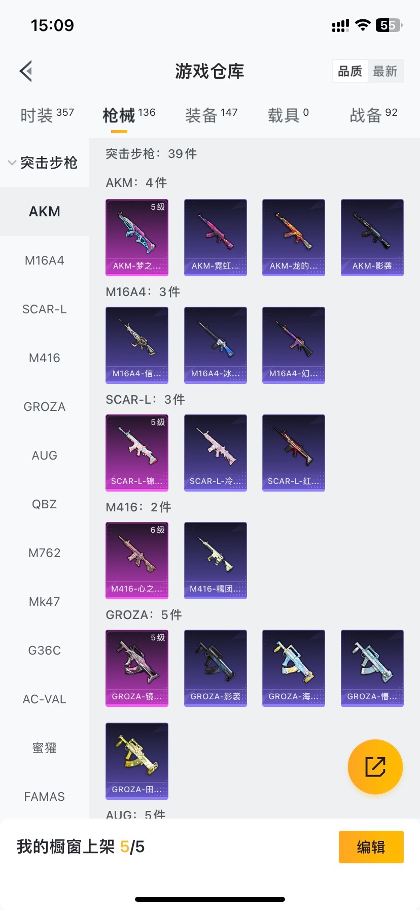 AKM-梦之光华,SCAR-L-锦绣绵绵,M416-心之恋语,GROZA-镜光银凌,Kar98K-巳巳如意,AKS-74U-信仰神谕