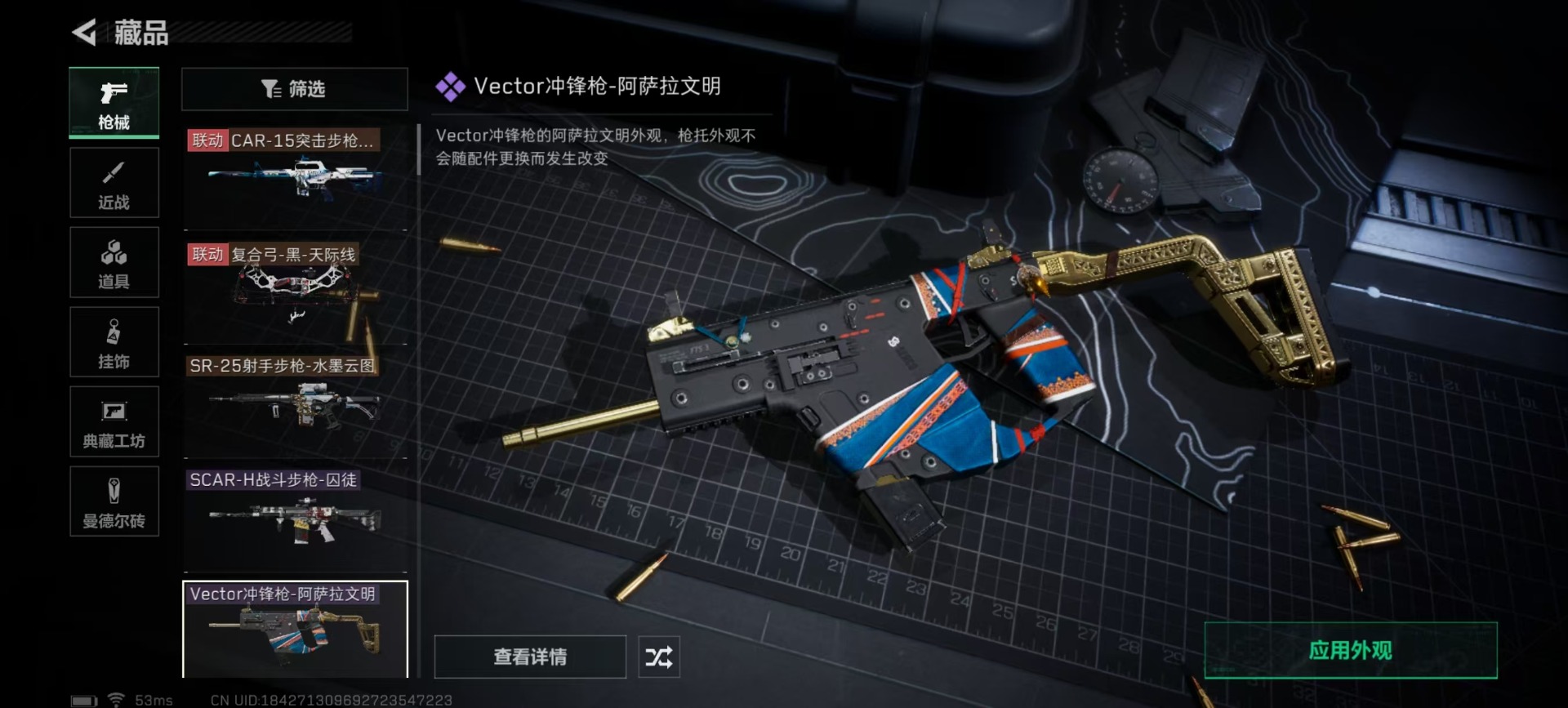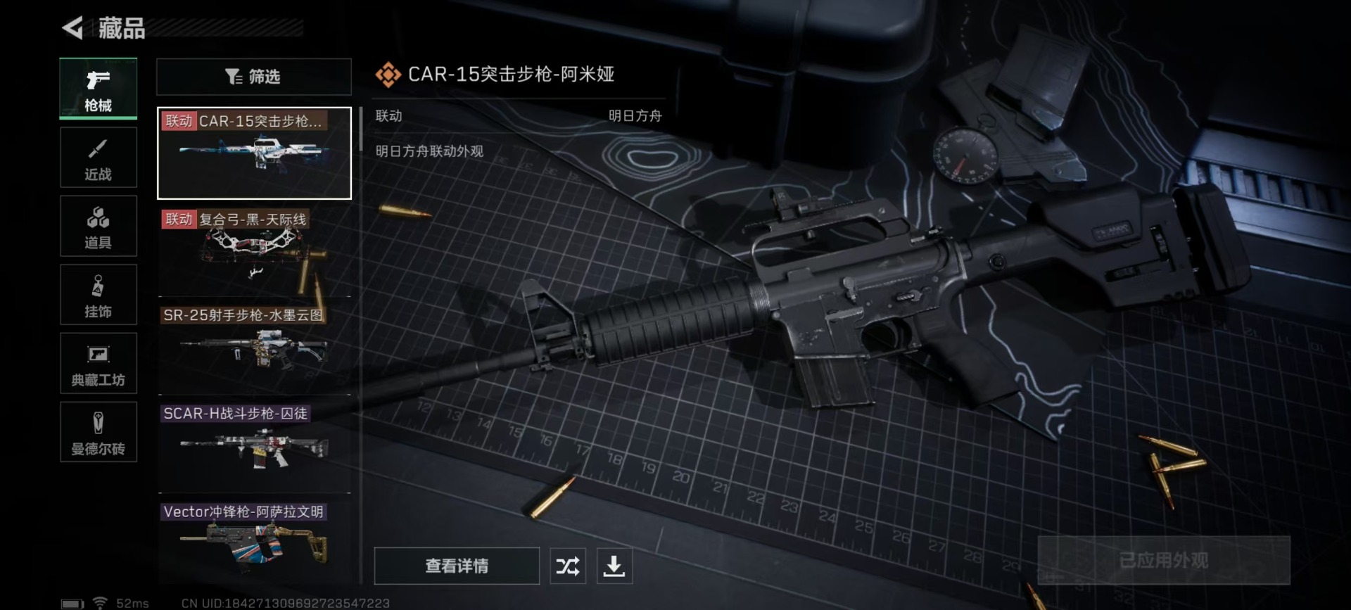 [11598755]可二次 可修改实名 实名:可修改 顶级安全箱(3×3)9.15号到期 总资产:192.7 哈夫币:8.008 传说武器皮肤:SR-25射手步枪-水墨云图,复合弓-黑-天际线,CAR-15突击步枪-阿米娅 史诗武器皮肤:SCAR-H战斗步枪-囚徒,Vector冲锋枪-阿萨拉文明