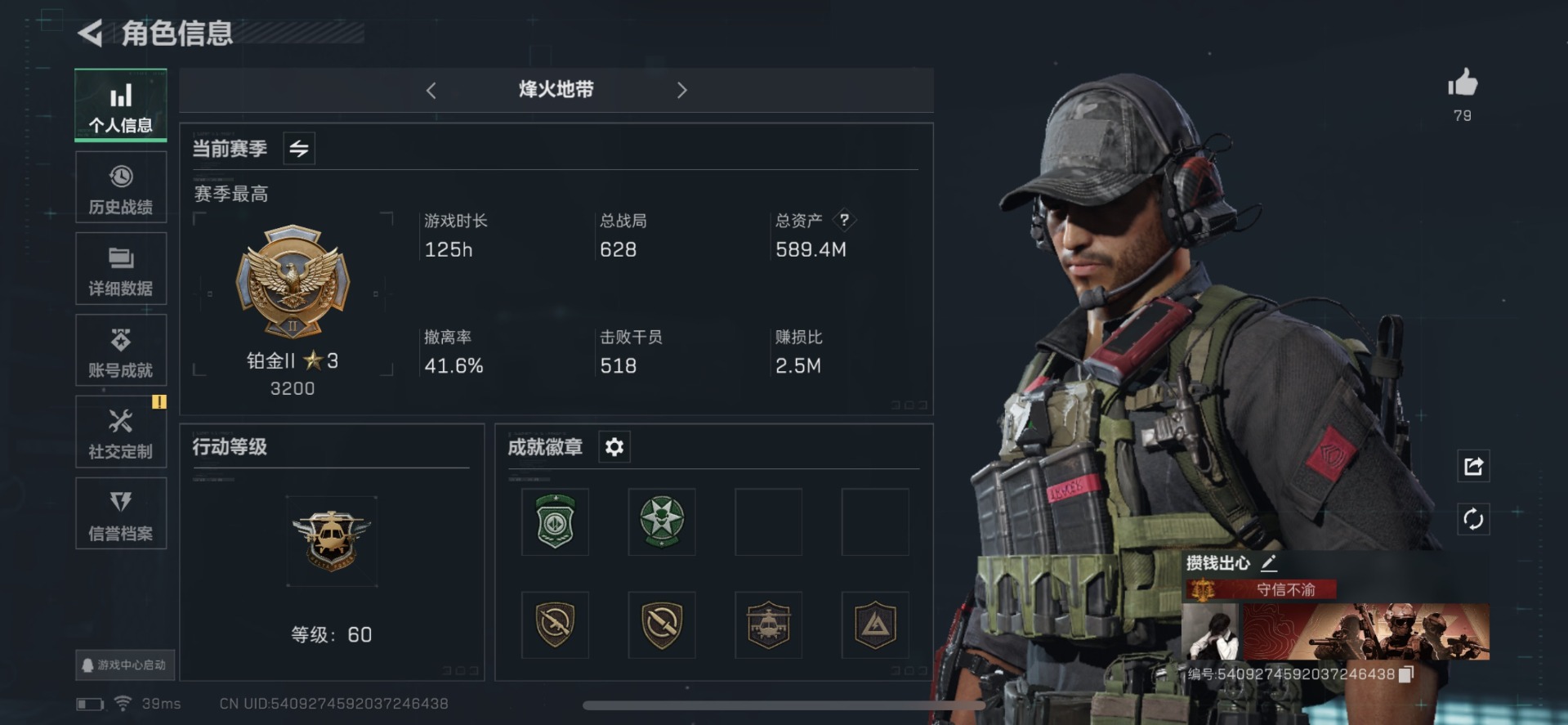 [11598767]总资产:589.4M 5传说枪械 哈夫币:257K 可二次 可修改实名 优质装备:顶级安全箱(3x3) 烽火地带段位:铂金 全面战场段位:无段位 传说武器皮肤:M4A1突击步枪-阿米娅,CAR-15突击步枪-阿米娅,AWM狙击步枪-捞点薯条,腾龙突击步枪-捞点薯条,93R-捞点薯条