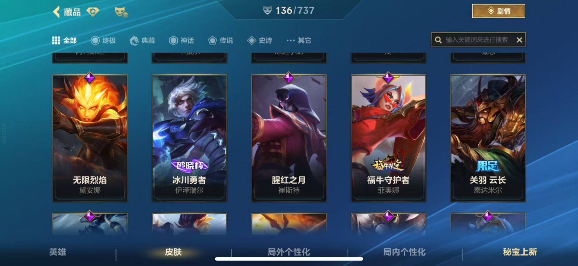 - PX_2092082-贵族6/皮肤206/传说9/史诗55/英雄124/蔷薇恋人/特工战影/云鹰飞将/炽阳神光/无双飞将/山海炽霜斩/乘龙铭钟鼎/战鼓燎原/云缨幻光神枪/澜愿照九州拓/女娲愿照千秋盛/姜子牙天穹之誓/狄仁杰阴阳师/赵云皇家上将/蔷薇恋人/白起夜都怪侠/芈月幻夜卜梦/云间偶戏/元歌无心/山海玄木吟/狄仁杰魔术师/万华元夜/沙漠行僧/项羽海滩派对/演武夺筹/王昭君午后时光/金庭之子/亚