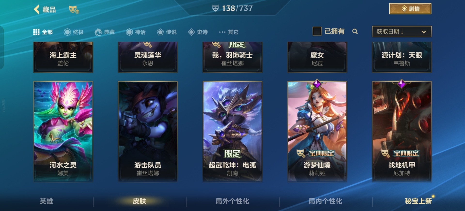 - [11845328]V7 1典藏 7传说 125英雄 245皮肤 可修改实名 优质装备:无限飓风号(高达),黄金射手座,仲夏夜之梦(大飞蛾),游龙清影(小青龙),涂山容容 珍宝阁皮:妄想食味,女武神 限定皮:愿照·千秋盛(女娲年限),映山客,鸣野蒿,凤凰于飞,补天,遇见飞天,高山流水,五谷丰年,游园惊梦,梁祝,天狼绘梦者,李小龙,玄武志(苏烈年限),朱雀志(守约年限),寅虎·心曲(虎婆) 史诗皮:器灵·浮梦炉,遇见神鹿,苍穹之光,千年之狐,江河有灵,魅语,无限星赏官,冰冠公主,青蛇,偶像歌手,晚萤,银翎春语,龙骑士(小龙虾),末日机甲-吕布,猫狗日记-大乔,乱世虎臣,女仆咖啡,摇滚巨星,水果甜心,绅士熊喵,天才门将,星夜王子,心灵骇客,时之奇旅-安琪拉,德古拉伯爵,暗隐猎兽者,幽灵船长,鬼剑武藏,心灵战警,舞动绿茵,地狱岩魂,诗语江南,纤云弄巧,繁星吟游(呼啦呼啦),拒霜思,缤纷独角兽,乘风破浪,逐浪之夏,水晶猎龙者,金属风暴,原初追逐者,圣诞狂欢,鹰眼统帅,王者之锤,暗夜贵公子,魅力维加斯,黎明之约,雪上飞焰,顽趣-阿古朵,无心,未来纪元-赵云