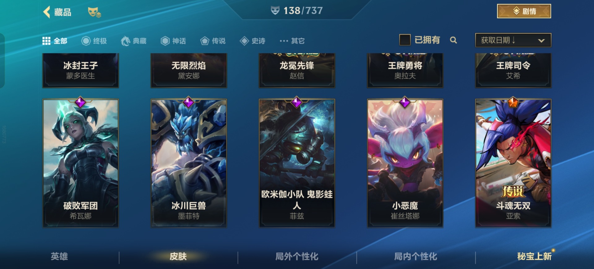 - [11609141]V6 4传说 109英雄 85皮肤 可修改实名 优质装备:云鹰飞将(小将军),无双飞将,澜逐花归海 传说皮:落雪白狼 珍宝阁皮:万物之道 限定皮:五谷丰年,神器·万象笔 史诗皮:化蝶舞,龙之律动,百相守梦-黄忠,特工魅影,江河有灵,百解令(蒙犽),水果甜心,鬼剑武藏,曙光守护者,金属风暴,鹰眼统帅,魅力维加斯,未来纪元-赵云