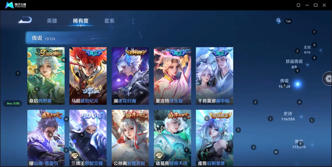 - [11714129]V6 3传说 113英雄 105皮肤 可修改实名 传说皮:幻光神枪 限定皮:鸣野蒿,凤求凰(白切鸡) 史诗皮:百相守梦-百里守约,紫霞仙子,白龙吟,黄金分割率,千年之狐,节奏热浪,水果甜心,星夜王子,暗隐猎兽者,幽灵船长,鬼剑武藏,天秀·启明,逐浪之夏,月团寄思,曙光守护者,金属风暴,鹰眼统帅,魅力维加斯