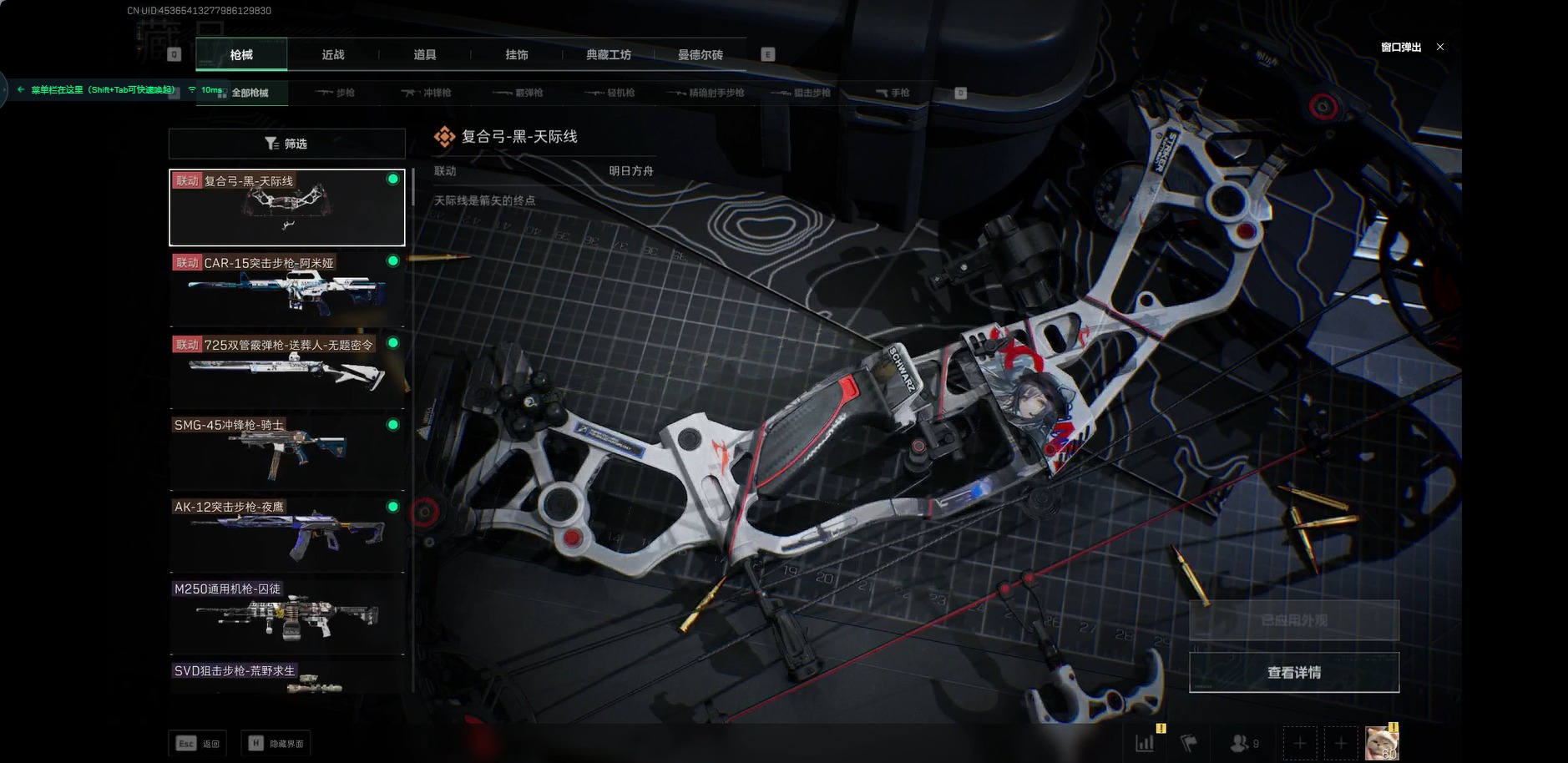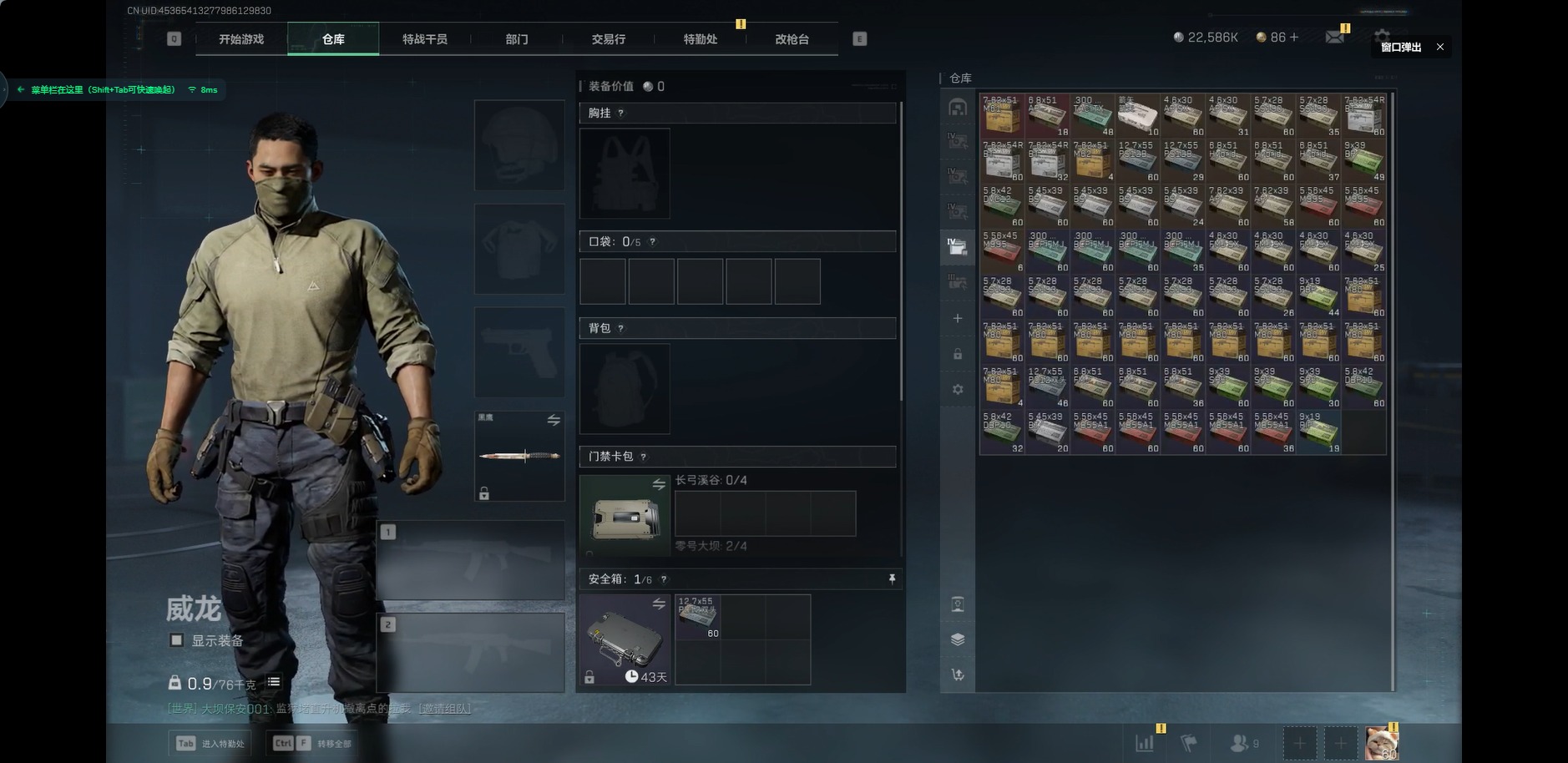 - [11523843]总资产:141.4 7传说枪械 进阶安全箱(9.17到期) 可二次 可修改实名 烽火地带段位:黄金 全面战场段位:尉官 哈夫币:1.470 传说武器皮肤:SR-25射手步枪-水墨云图,SMG45冲锋枪-骑士,93R-捞点薯条,腾龙突击步枪-捞点薯条,AWM狙击步枪-捞点薯条,复合弓-黑-天际线,M7战斗步枪-维京 史诗武器皮肤:AUG突击步枪-蝮蛇,M700狙击步枪-蝮蛇,PKM通用机枪-蝮蛇,MP5冲锋枪-深海恐惧,SG552突击步枪-深海恐惧,AKM突击步枪-林中猎手,SVD狙击步枪-暗夜猎手,M1014霰弹枪-林中猎手,SV-98狙击步枪-林中猎手,PTR-32突击步枪-英雄,M250通用机枪-囚徒,SCAR-H战斗步枪-囚徒,QBZ95-1突击步枪-曙光,UZI冲锋枪-危险实验,M249轻机枪-维京,SCAR-H战斗步枪-危险实验,沙漠之鹰-曙光,S12K霰弹枪-曙光,AS Val突击步枪-刀锋,QSZ92G-风林火山,93R-博士