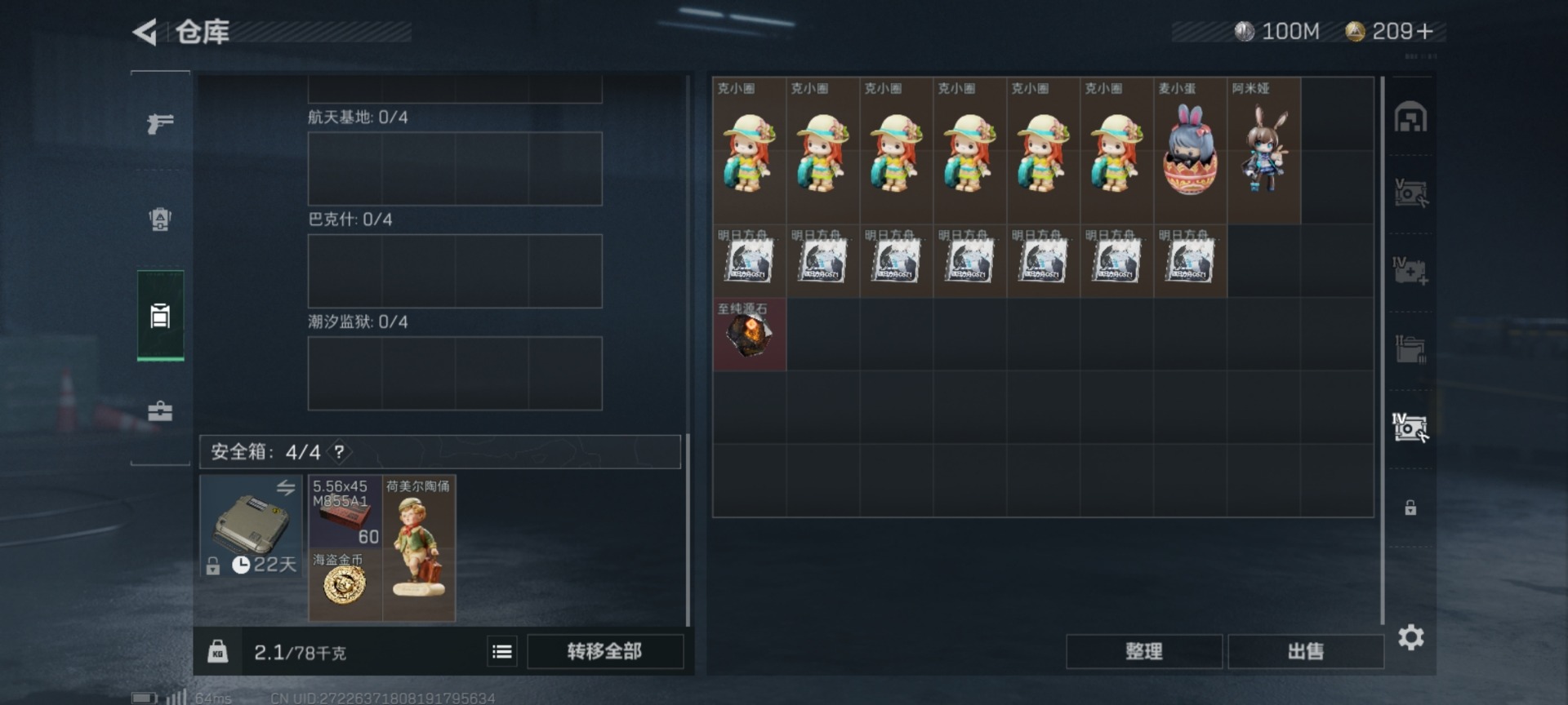 - [11682619]总资产:98.8M 2干员外观 11传说枪械 哈夫币:2.175K 高级安全箱(2×3)9.15号到期 可二次 可修改实名 烽火地带段位:钻石 全面战场段位:军士长 传说武器皮肤:SMG45冲锋枪-骑士,G3战斗步枪-流光铂影,M4A1突击步枪-阿米娅,CAR-15突击步枪-阿米娅,复合弓-黑-天际线,AWM狙击步枪-捞点薯条,腾龙突击步枪-捞点薯条,93R-捞点薯条,勇士冲锋枪-能天使-午夜邮差,725双管霰弹枪-送葬人-无题密令,M4A1突击步枪-蚀金玫瑰 史诗武器皮肤:Vector冲锋枪-潜袭者,SG552突击步枪-深海恐惧,SVD狙击步枪-荒野求生,M250通用机枪-囚徒,SV-98狙击步枪-囚徒,SCAR-H战斗步枪-囚徒,腾龙突击步枪-无垢,MP7冲锋枪-无垢,S12K霰弹枪-曙光,M700狙击步枪-竞技风 干员外观:红狼-蚀金玫瑰,露娜-黑·天际线