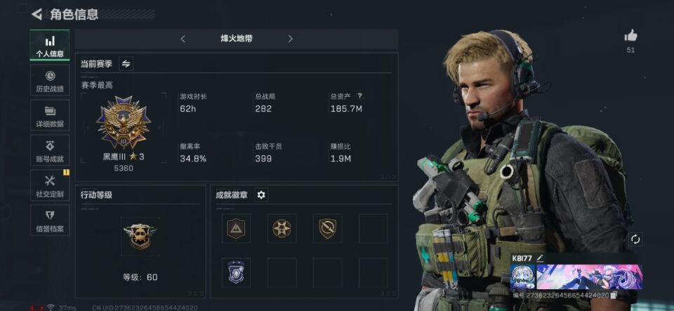 - [11626139]总资产:145.6M 11传说枪械 哈夫币:30.016K 高级安全箱(2×3)9.15号到期 可二次 安全保护中 可修改实名 烽火地带段位:钻石 全面战场段位:无段位 传说武器皮肤:UZI冲锋枪-特斯拉线圈,AWM狙击步枪-捞点薯条,腾龙突击步枪-捞点薯条,93R-捞点薯条,AK-12突击步枪-特斯拉线圈,SR-3M紧凑突击步枪-特斯拉线圈,勇士冲锋枪-能天使-午夜邮差,Vector冲锋枪-能天使-午夜邮差,725双管霰弹枪-送葬人-无题密令,M4A1突击步枪-阿米娅,CAR-15突击步枪-阿米娅