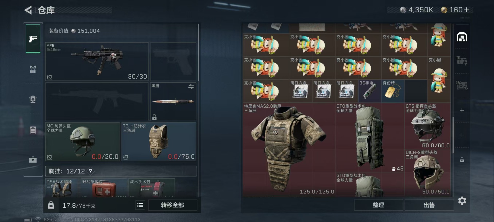 - [11818741]总资产:43.8M 1干员外观 1近战传说 20传说枪械 哈夫币:7.747K 可二次 可修改实名 优质装备:近战-北极星 烽火地带段位:黑鹰 全面战场段位:军士长 传说武器皮肤:AS Val突击步枪-蛇年祥瑞,SR-25射手步枪-水墨云图,SCAR-H战斗步枪-水墨云图,AK-12突击步枪-夜鹰,SMG45冲锋枪-骑士,M4A1突击步枪-阿米娅,CAR-15突击步枪-阿米娅,复合弓-黑-天际线,AK-12突击步枪-特斯拉线圈,SR-3M紧凑突击步枪-特斯拉线圈,UZI冲锋枪-特斯拉线圈,勇士冲锋枪-能天使-午夜邮差,725双管霰弹枪-送葬人-无题密令,P90冲锋枪-神秘艺术,M7战斗步枪-神秘艺术,M7战斗步枪-维京,M4A1突击步枪-蚀金玫瑰,QBZ95-1突击步枪-破军,Vector冲锋枪-能天使-午夜邮差 史诗武器皮肤:SR-3M紧凑突击步枪-英雄,AUG突击步枪-蝮蛇,M700狙击步枪-蝮蛇,PKM通用机枪-蝮蛇,G3战斗步枪-战场英杰,SR-25射手步枪-尖端治疗,PKM通用机枪-荒野求生,AS Val突击步枪-尖端治疗,M700狙击步枪-守夜人,SG552突击步枪-尖端治疗,Ash-12战斗步枪-守夜人,MP5冲锋枪-深海恐惧,SR-3M紧凑突击步枪-荒野求生,勇士冲锋枪-深海恐惧,SG552突击步枪-深海恐惧,AKM突击步枪-林中猎手,M16A4突击步枪-竞赛选手,PKM通用机枪-守夜人,SVD狙击步枪-荒野求生,M14射手步枪-禁卫,M1014霰弹枪-林中猎手,SV-98狙击步枪-林中猎手,PTR-32突击步枪-英雄,PSG-1射手步枪-无垢,AS Val突击步枪-典狱官,M250通用机枪-囚徒,SV-98狙击步枪-囚徒,SCAR-H战斗步枪-囚徒,腾龙突击步枪-无垢,MP7冲锋枪-无垢,M700狙击步枪-阿萨拉工艺,QBZ95-1突击步枪-曙光,UZI冲锋枪-危险实验,M249轻机枪-维京,SCAR-H战斗步枪-危险实验,沙漠之鹰-曙光,K416突击步枪-竞技风,SCAR-H战斗步枪-国风,G3战斗步枪-阿萨拉工艺,Vector冲锋枪-阿萨拉文明,SVD狙击步枪-阿萨拉工艺,S12K霰弹枪-曙光,AS Val突击步枪-刀锋,PKM通用机枪-魔药,M14射手步枪-黑鹰坠落,M700狙击步枪-竞技风,QSZ92G-风林火山,93R-博士 干员外观:骇
