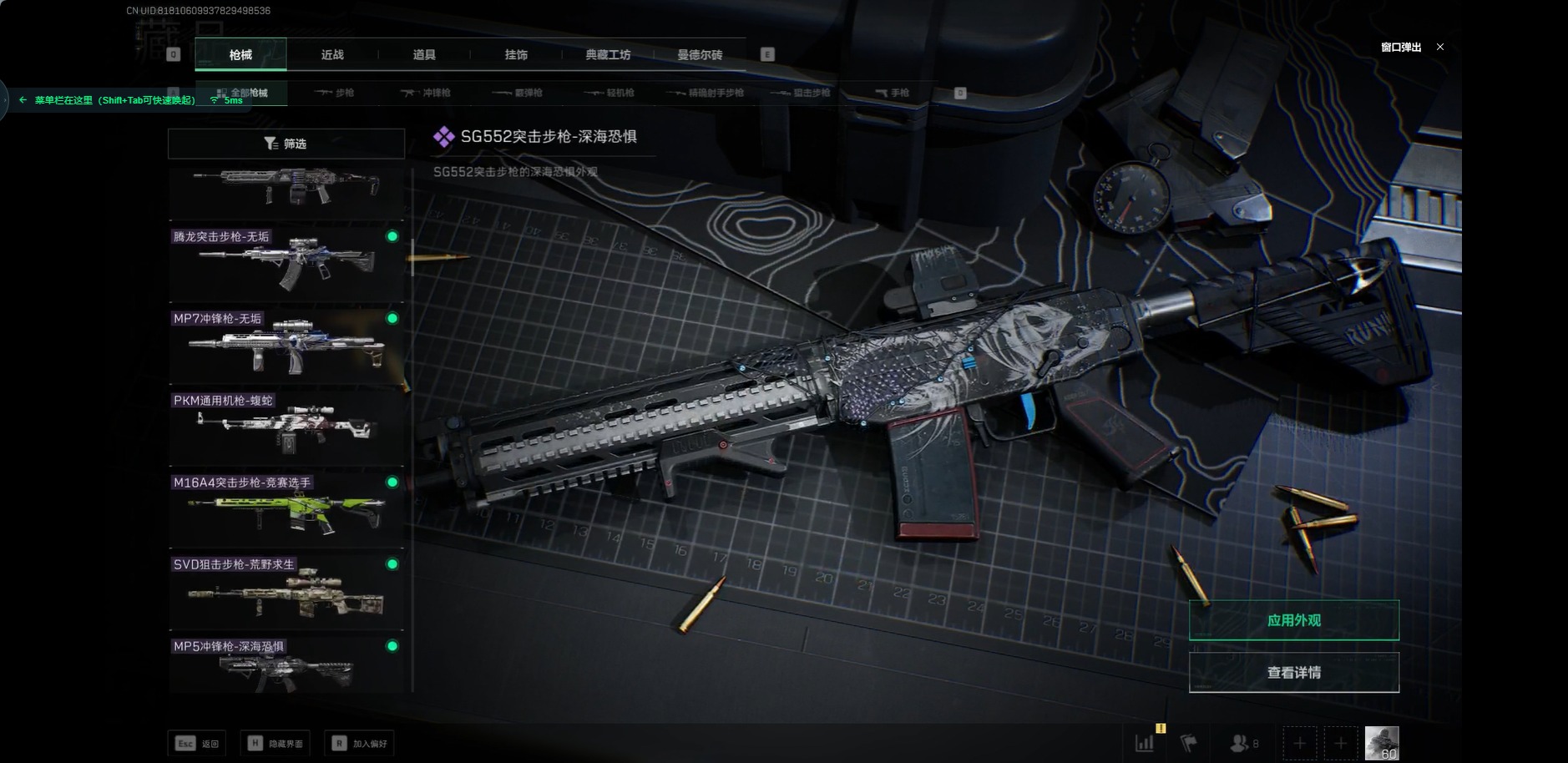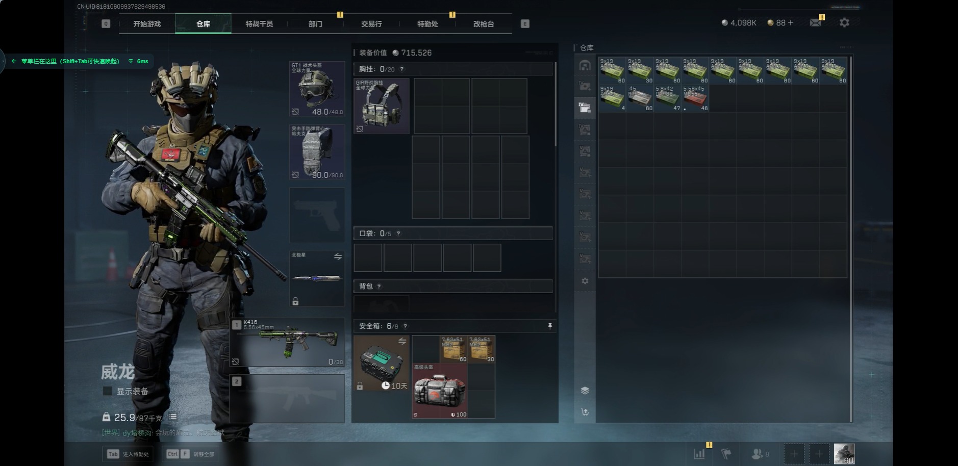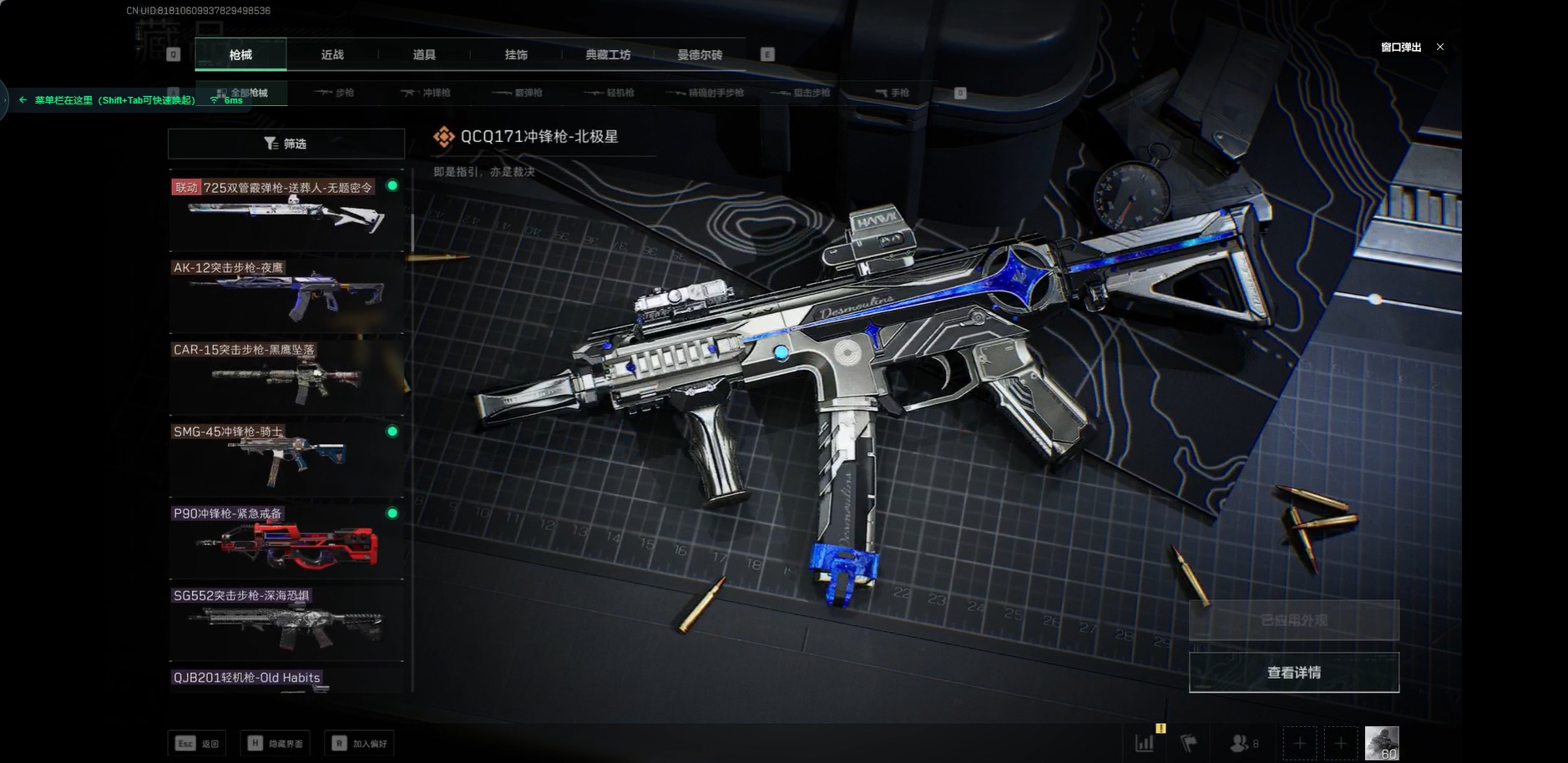[11599408]总资产:258.2M 1近战传说 17传说枪械 哈夫币:4.098K 顶级安全箱(3×3)9.15号到期 可二次 可修改实名 优质装备:近战-北极星,顶级安全箱(3x3) 烽火地带段位:钻石 全面战场段位:列兵 传说武器皮肤:SMG45冲锋枪-骑士,UZI冲锋枪-特斯拉线圈,AWM狙击步枪-捞点薯条,腾龙突击步枪-捞点薯条,93R-捞点薯条,AK-12突击步枪-特斯拉线圈,SR-3M紧凑突击步枪-特斯拉线圈,勇士冲锋枪-能天使-午夜邮差,复合弓-黑-天际线,K437突击步枪-北极星,QCQ171冲锋枪-北极星,725双管霰弹枪-送葬人-无题密令,M4A1突击步枪-阿米娅,CAR-15突击步枪-阿米娅,AK-12突击步枪-夜鹰,CAR-15突击步枪-黑鹰坠落 史诗武器皮肤:MP7冲锋枪-原型机(典藏),PKM通用机枪-蝮蛇,SG552突击步枪-尖端治疗,M1014霰弹枪-林中猎手,PKM通用机枪-守夜人,AS Val突击步枪-尖端治疗,M700狙击步枪-守夜人,Ash-12战斗步枪-守夜人,SR-25射手步枪-尖端治疗,MP5冲锋枪-深海恐惧,SG552突击步枪-深海恐惧,AKM突击步枪-林中猎手,.357左轮-幸运时刻,PTR-32突击步枪-Old Habits,M16A4突击步枪-竞赛选手,SV-98狙击步枪-林中猎手,PTR-32突击步枪-英雄,SCAR-H战斗步枪-囚徒,腾龙突击步枪-无垢,MP7冲锋枪-无垢,PSG-1射手步枪-无垢,SVD狙击步枪-荒野求生,SR-3M紧凑突击步枪-荒野求生,PKM通用机枪-荒野求生,Vector冲锋枪-阿萨拉文明,P90冲锋枪-紧急戒备