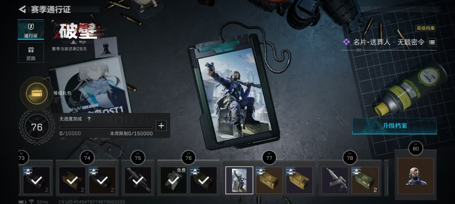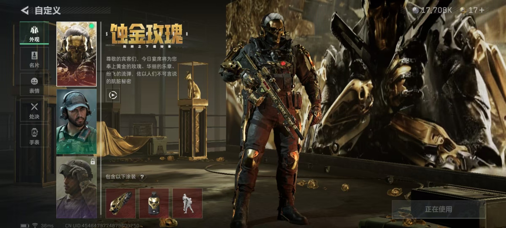 [11599410]总资产:201.4 2干员外观 1近战传说 2传说枪械 可二次 可修改实名 优质装备:近战-北极星 烽火地带段位:黑鹰 全面战场段位:上等兵 哈夫币:17.708 传说武器皮肤:M4A1突击步枪-蚀金玫瑰 史诗武器皮肤:M4A1突击步枪-特勤执行 干员外观:红狼-蚀金玫瑰,露娜-黑·天际线