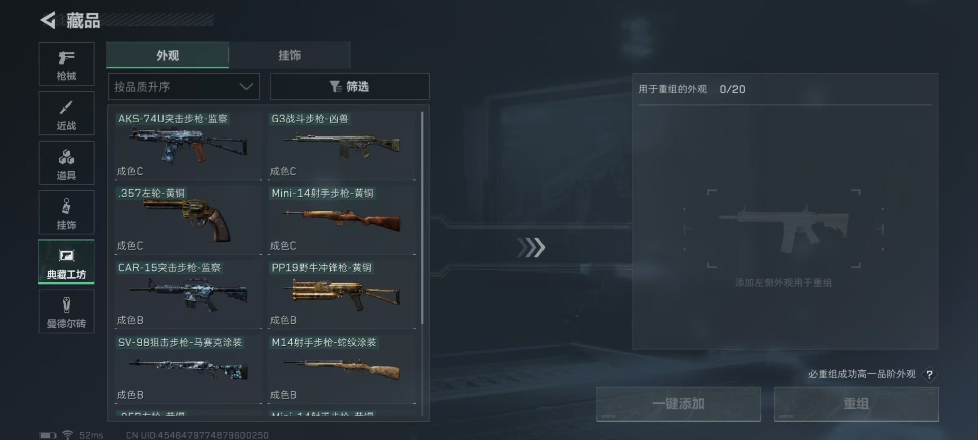 - PX_2102080- 苹果手Q-20王牌印记-13粉装-5特效枪-2载具-113964热力值-292套装-335枪皮-0卓越印记-0传奇印记 【13粉装】,梦幻火箭,甜心巧克力,宝贝奶油派,天使彩虹糖,放客神游,暗夜玫瑰,闲梦青缨,复仇流浪者,月影灵韵,天启纪元,极限特训,快乐主宰,粉色回忆 【5特效枪】AKM-绿萝繁花-5级 SCAR-L-青春物语-7级 M416-五爪金龙-7级 AUG-超新