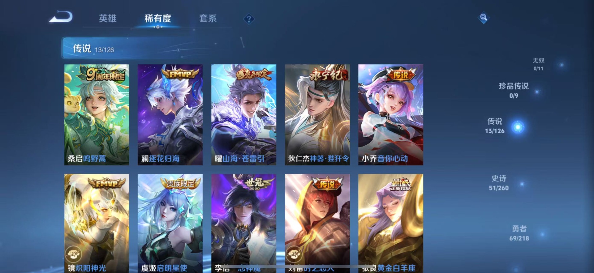 - [11990209]V9 3典藏 21传说 125英雄 343皮肤 可修改实名 优质装备:无限飓风号(高达),鸣剑·曳影,全息碎影(猴子典藏),黄金狮子座,黄金射手座,冠军飞将,云鹰飞将(小将军),久胜战神,一念神魔,云霓雀翎,末日机甲-孙尚香(绿蚂蚱),地狱之眼,胖达荣荣,时之恋人-刘备(电焊工),淬星耀世,涂山容容 传说皮:幻光神枪 珍宝阁皮:妄想食味,优雅恋人,蔷薇恋人 限定皮:愿照·九州拓(澜年限),愿照·山河定(司空震年限),鸣野蒿,至尊宝,白虎志(电光耗子),凤求凰(白切鸡),凤凰于飞,太华(伽罗年限),魔法小厨娘,飞衡(韩信年限),玄嵩(庄周年限),瑞麟志(木兰年限),遇见飞天,冰锋战神,幽恒(沐浴露),游园惊梦,梁祝,天狼狩猎者,龙胆,逐梦之翼,烈魂,岱宗(典韦年限),天狼绘梦者,逐梦之影,玄武志(苏烈年限),纯白花嫁,一生所爱,天魔缭乱,青春决赛季,热情桑巴,美猴王 史诗皮:器灵·浮梦炉,化蝶舞,谪仙醉月,龙之律动,雪豹·霜爪,茶境仙,百相守梦-百里守约,星界特工,百相守梦-黄忠,织梦人,遇见神鹿,白龙吟,黄金分割率,特工魅影,千年之狐,魅语,百解令(蒙犽),无限星赏官,冰冠公主,偶像歌手,晚萤,电玩·爆裂旋风,龙骑士(小龙虾),末日机甲-吕布,猫狗日记-孙策,时之恋人-孙尚香,乱世虎臣,节奏热浪,摇滚巨星,水果甜心,绅士熊喵,天才门将,心灵骇客,功夫厨神,德古拉伯爵,暗隐猎兽者,幽灵船长,鬼剑武藏,心灵战警,舞动绿茵,地狱岩魂,拒霜思,乘风破浪,逐浪之夏,月团寄思,水晶猎龙者,曙光守护者,箭羽风息,金属风暴,原初追逐者,圣诞狂欢,圣诞恋歌,鹰眼统帅,暗夜贵公子,魅力维加斯,黎明之约,赏金猎手,奇遇舞章,未来纪元-赵云