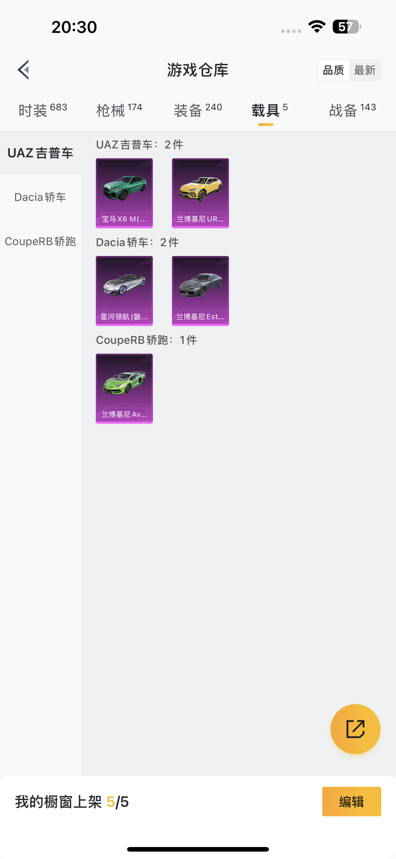 [9474076]实名: 可修改 时装数: 517 载具数: 5 枪械数: 155 战备数: 135 热门装扮: 梦幻火箭(新101),呆萌铁蟹,天使彩虹糖,迅捷狂鲨,缤纷油彩,黄伞悠悠,炙焰红王,雪国幻梦,彩虹鹿灵,齐天大圣,蓝莓炮弹,橘柚倾心,寒光使者,激萌罗小黑,奶芙汪汪,胖达团团,胖达圆圆,兔兔白日梦,萨利娅 载具: 兰博基尼Estoque(银翼灰),兰博基尼Aventador SVJ(翡翠绿),兰博基尼URUS(明艳黄),星河领航(磐石银),宝马X6 M(曼岛绿) 稀有枪皮: MG3洛神天依,VSS烈焰拳霸,M416风花雪月,M249蓝莓炮弹,AWM橘柚倾心,Kar98K-巳巳如意,烟雾弹-丁香清露
