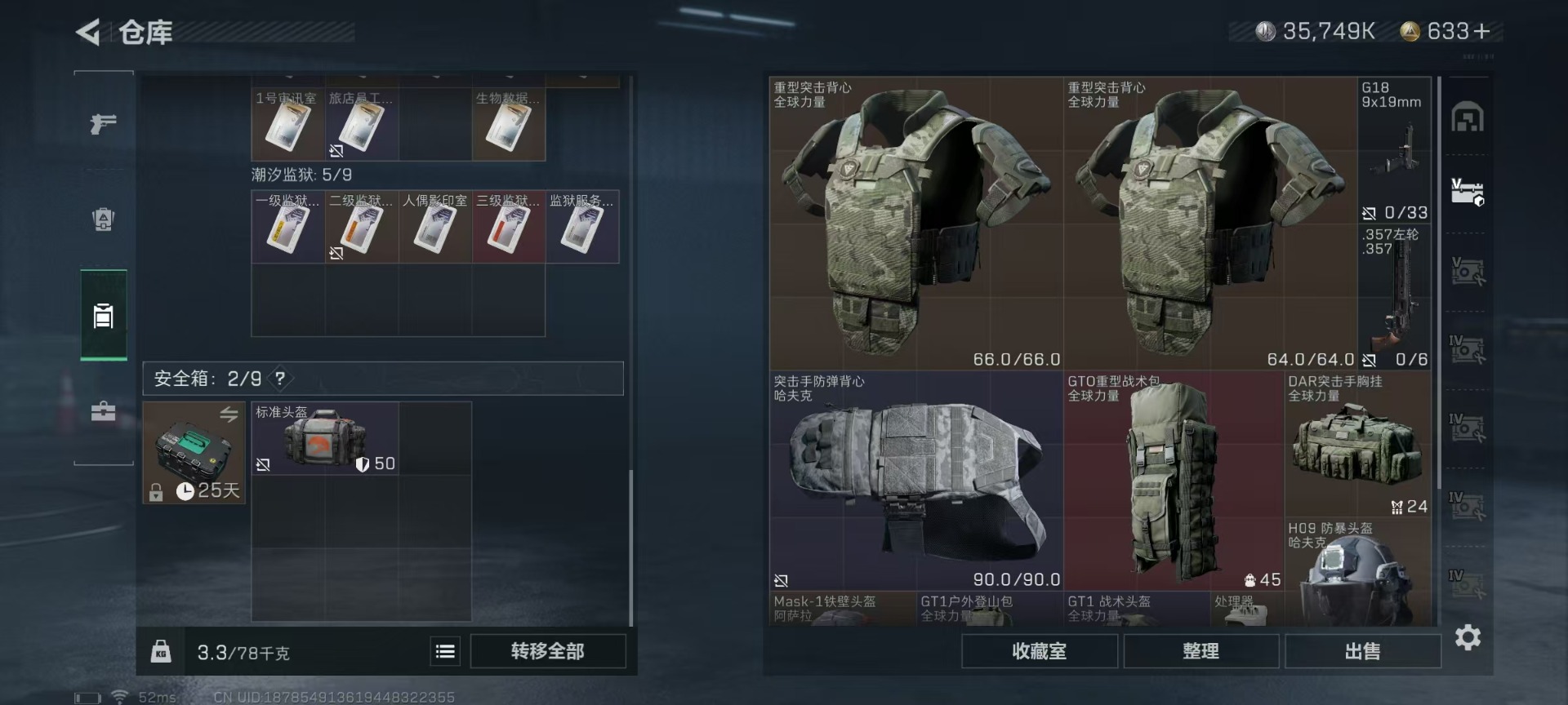 [11600201]总资产:312.1M 1近战传说 6传说枪械 哈夫币:35.749K 顶级安全箱(3×3)9.15号到期 可二次 可修改实名 优质装备:近战-黑海,顶级安全箱(3x3) 烽火地带段位:钻石 全面战场段位:列兵 传说武器皮肤:AK-12突击步枪-夜鹰,M16A4突击步枪-狩猎时刻,M4A1突击步枪-阿米娅,Vector冲锋枪-狩猎时刻,G3战斗步枪-狩猎时刻 史诗武器皮肤:Ash-12战斗步枪-守夜人,SG552突击步枪-尖端治疗,SG552突击步枪-深海恐惧,AKM突击步枪-林中猎手,SCAR-H战斗步枪-囚徒,AKM突击步枪-猎宝团