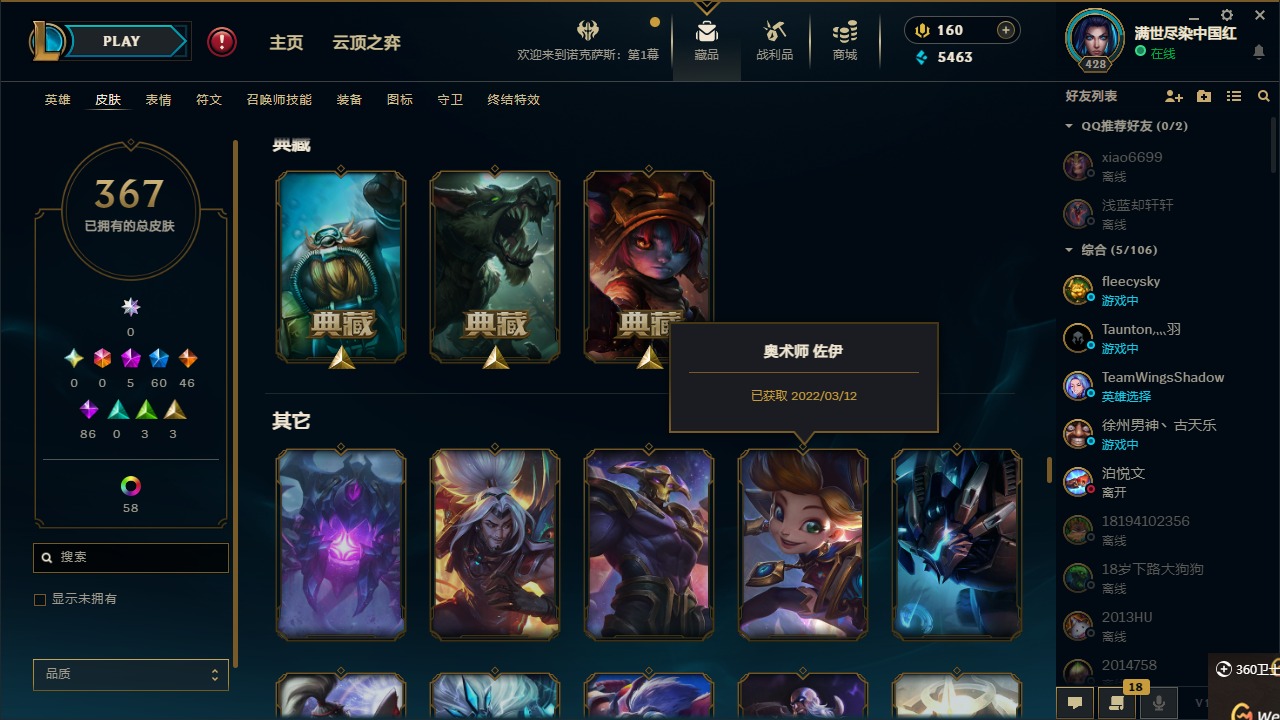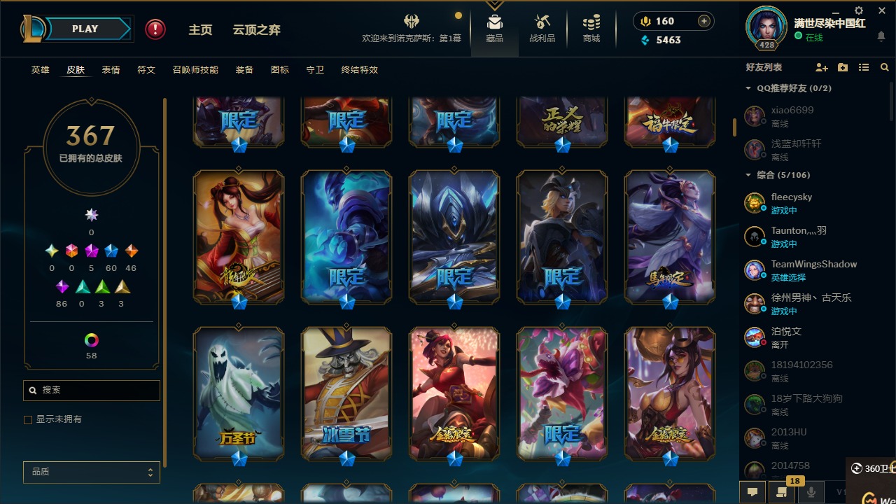 [11600208]5神话 60限定 46传说 86史诗 367皮肤 70炫彩 168英雄 连体穿越火线枪战王者连体号 15王者武器 241英雄武器 贵族9 皮肤:天龙之子 斯莫德,灵魂莲华 莉莉娅,泳池派对 瑟提,神龙尊者 炎龙瑟提,战斗学院 永恩,灵能特工 派克,源计划:逆流 塞拉斯,星之守护者 霞,SSG 洛,宇航员 巴德,冰雪游神 巴德,腥红之月 卡莉丝塔,糖果之王 艾翁,泳池派对 雷克塞,灵魂莲华 锤石,至臻 未来战士 锤石,腥红之月 锤石,冠军典狱长 锤石,深渊恐惧 锤石,EDG 悠米,战斗校长 悠米,源代码 娜美,海皇姬 娜美,鲛妮座人 娜美,河水之灵 娜美,锦鲤 娜美,奥德赛 亚托克斯,腥红之月 亚托克斯,碎心之拳 蔚,源计划:裁决 蔚,女警官 蔚,真实伤害 奇亚娜,未来战士 艾克,爵士 克烈,天煞 劫,源计划:阴 劫,冲击之刃 劫,胜利枪神 卢锡安,德玛西亚警官 卢锡安,西部魔影 卢锡安,夺命前锋 卢锡安,源计划:魅灵 赛娜,真实伤害 赛娜,五杀摇滚之噪音 佛耶戈,源计划:疯狂 金克丝,星之守护者 金克丝,丧尸杀手 金克丝,暗星尊 烬,腥红之月 烬,圣诞老人 布隆,猛虎 布隆,莫测之影 卡蜜尔,黯晶之眼 维克兹,战地机甲 维克兹,奥德赛 亚索,黑夜使者 亚索,腥红之月 亚索,西部牛仔 亚索,邪恶魔人 扎克,宇航员 纳尔,萌侦探 喵尔摩斯,电玩女神 卡莎,K/DA 卡莎,SKT T1 婕拉,鬼影森森 婕拉,野火之藤 婕拉,奥术师 佐伊,泳池派对