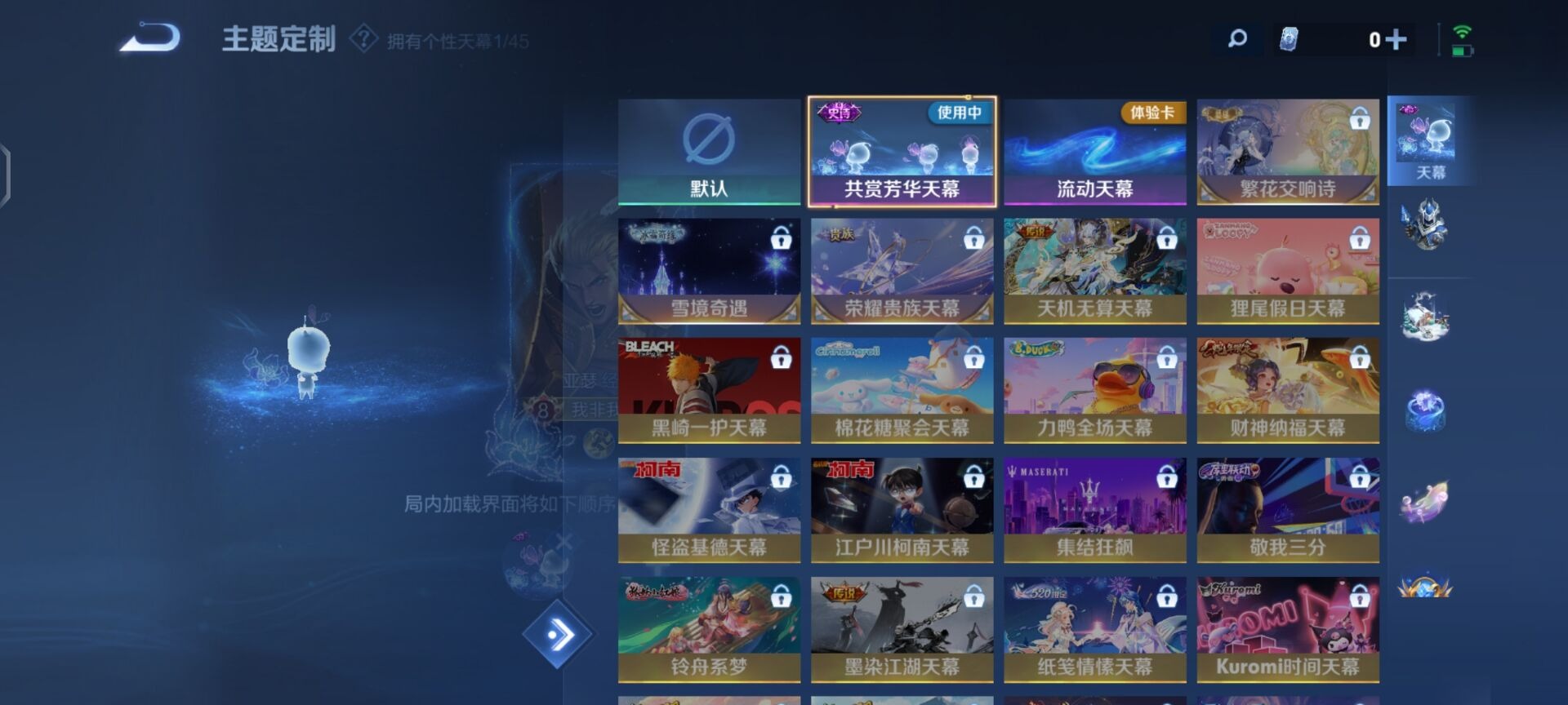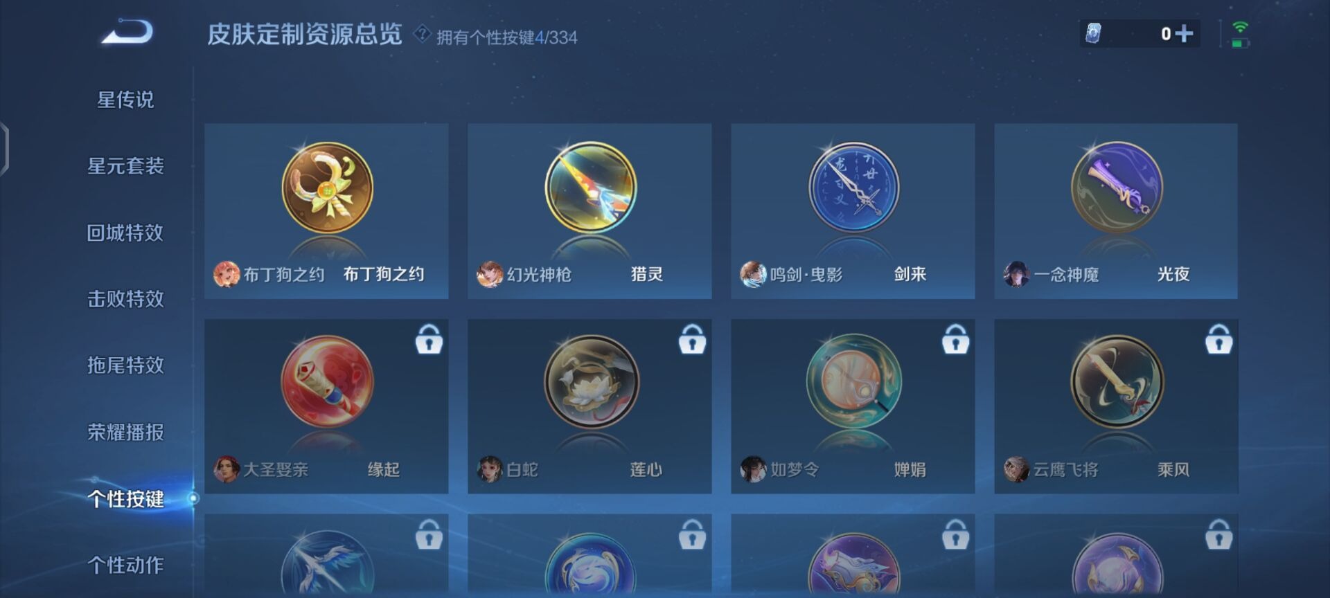 铠青龙志,鲁班七号乒乒小将,吕布御风骁将,镜匿光追影者,诸葛亮时雨天司,兰陵王默契交锋,公孙离祈雪灵祝,裴擒虎李小龙,裴擒虎天狼狩猎者,上官婉儿梁祝,花木兰青春决赛季,桑启鸣野蒿,猪八戒猪悟能,孙悟空孙行者,孙悟空大圣娶亲,百里玄策白虎志,马超神威,韩信飞衡,百里守约朱雀志,关羽冰锋战神