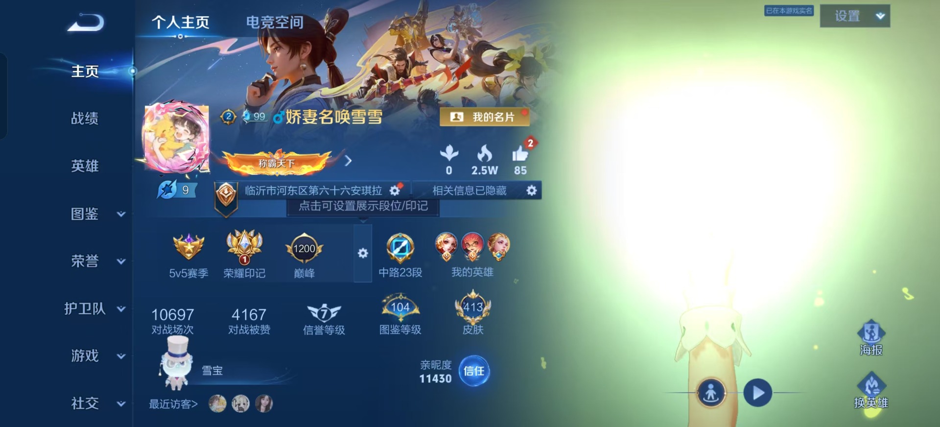 [11525701]V10 2典藏 1珍品无双 2珍品传说 46传说 126英雄 413皮肤 典藏英雄武则天 可修改实名 优质装备:馥梦繁花,杀手不太冷,最初的交响(伽罗典藏),怪盗基德,酷洛米之心,黄金狮子座,黄金射手座,冠军飞将,云鹰飞将(小将军),猫影幻舞,久胜战神,炽阳神光,一念神魔,云霓雀翎,末日机甲-孙尚香(绿蚂蚱),地狱火,仲夏夜之梦(大飞蛾),零号·赤焰,海洋之心,地狱之眼,李逍遥,乞巧织情,淬星耀世,超时空战士-狄仁杰,遇见胡旋,音你闪耀(rap皮),山海·炽霜斩(李信年限),山海·琳琅生(小乔年限),浮生妄,妄想实况,大乔-时之奇旅,艾琳觅芳踪,玄雷天君 传说皮:貂蝉曦玄引,典韦战鼓燎原,幻光神枪 珍宝阁皮:优雅恋人,玩趣恶龙 限定皮:愿照·九州拓(澜年限),愿照·福禄聚(蔡文姬年限),愿照·岁时盈(虞姬年限),愿照·山河定(司空震年限),愿照·众生和(妲己年限),愿照·千秋盛(女娲年限),陌上桑,鸣野蒿,至尊宝,凤求凰(白切鸡),太华(伽罗年限),武陵仙君(小桃花),魔法小厨娘,飞衡(韩信年限),遇见飞天,高山流水,诗剑行,齐天大圣,怒海麟威,五谷丰年,冰锋战神,天狼运算者,游园惊梦,梁祝,逐梦之星,天狼溯光者,天狼征服者,李小龙,辉光之辰,孙行者,大圣娶亲,天魔缭乱,热情桑巴,美猴王 史诗皮:鸭鸭历险记-刘禅,器灵·浮梦炉,狼魂孤将,化蝶舞,灵蛊蚀心,星界战将,龙之律动,石田雨龙,茶境仙,破空之剑,上官婉儿群星魔术团,蔬乡物语(鲁班七号),乘龙·聚宝船(安琪拉年限),百相守梦-百里守约,星界特工,百相守梦-黄忠,织梦人,遇见神鹿,紫霞仙子,苍穹之光,电玩小子(小书包),白龙吟,黄金分割率,特工魅影,千年之狐,永昼,浮梦罗烟,魅语,高渐离燃音魔法,无限星赏官,青蛇,偶像歌手,晚萤,暗夜猫娘,龙骑士(小龙虾),末日机甲-吕布,猫狗日记-孙策,猫狗日记-大乔,时之恋人-孙尚香,乱世虎臣,节奏热浪,修罗,女仆咖啡,摇滚巨星,水果甜心,绅士熊喵,天才门将,星夜王子,心灵骇客,功夫厨神,德古拉伯爵,暗隐猎兽者,幽灵船长,鬼剑武藏,暗渊魔法,心灵战警,乐园奇幻夜,天秀·启明,舞动绿茵,地狱岩魂,诗语江南,纤云弄巧,繁星吟游(呼啦呼啦),缤纷独角兽,乘风破浪,逐浪之夏,水晶猎龙者,曙光守护者,热力回旋,箭羽风息,唤灵魅影,金属风暴,原初追逐者,圣诞狂欢,圣诞恋歌,鹰眼统帅,