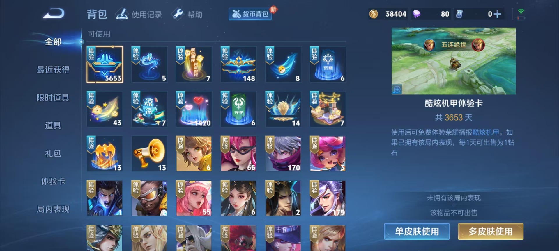 - [11602977]V8 1典藏 1珍品传说 23传说 124英雄 287皮肤 可修改实名 优质装备:弑枪猎影(韩信典藏),黑崎一护,黄金狮子座,云鹰飞将(小将军),炽阳神光,一念神魔,地狱火,地狱之眼,无双飞将,山海·炽霜斩(李信年限),山海·苍雷引(电光曜子),惊梅引 传说皮:乘龙·铭钟鼎(赵云年限),典韦战鼓燎原 珍宝阁皮:优雅恋人,蔷薇恋人,玩趣恶龙 限定皮:愿照·九州拓(澜年限),愿照·山河定(司空震年限),鸣野蒿,至尊宝,傲雪梅枪,时雨天司(水龙头),飞衡(韩信年限),影龙天霄,高山流水,诗剑行,齐天大圣,怒海麟威,五谷丰年,青龙志(铠年限),梁祝,岱宗(典韦年限),李小龙,孙行者,大圣娶亲,引擎之心,寅虎·赤拳(老虎年限),深海之息(深海大菠萝),山海·玄木吟(马可年限) 史诗皮:器灵·浮梦炉,星界战将,龙之律动,石田雨龙,茶境仙,怒海争锋,破空之剑,百相守梦-百里守约,百相守梦-黄忠,紫霞仙子,黄金分割率,特工魅影,千年之狐,江河有灵,百解令(蒙犽),蒙恬荣光圣徽,匿光破解者,偶像歌手,电玩·爆裂旋风,百相守梦(刘备),龙骑士(小龙虾),猫狗日记-孙策,乱世虎臣,节奏热浪,修罗,女仆咖啡,摇滚巨星,水果甜心,星夜王子,功夫厨神,德古拉伯爵,暗隐猎兽者,幽灵船长,鬼剑武藏,暗渊魔法,心灵战警,舞动绿茵,地狱岩魂,拒霜思,乘风破浪,水晶猎龙者,热力回旋,金属风暴,原初追逐者,圣诞恋歌,鹰眼统帅,魅力维加斯,赏金猎手,无心,未来纪元-赵云