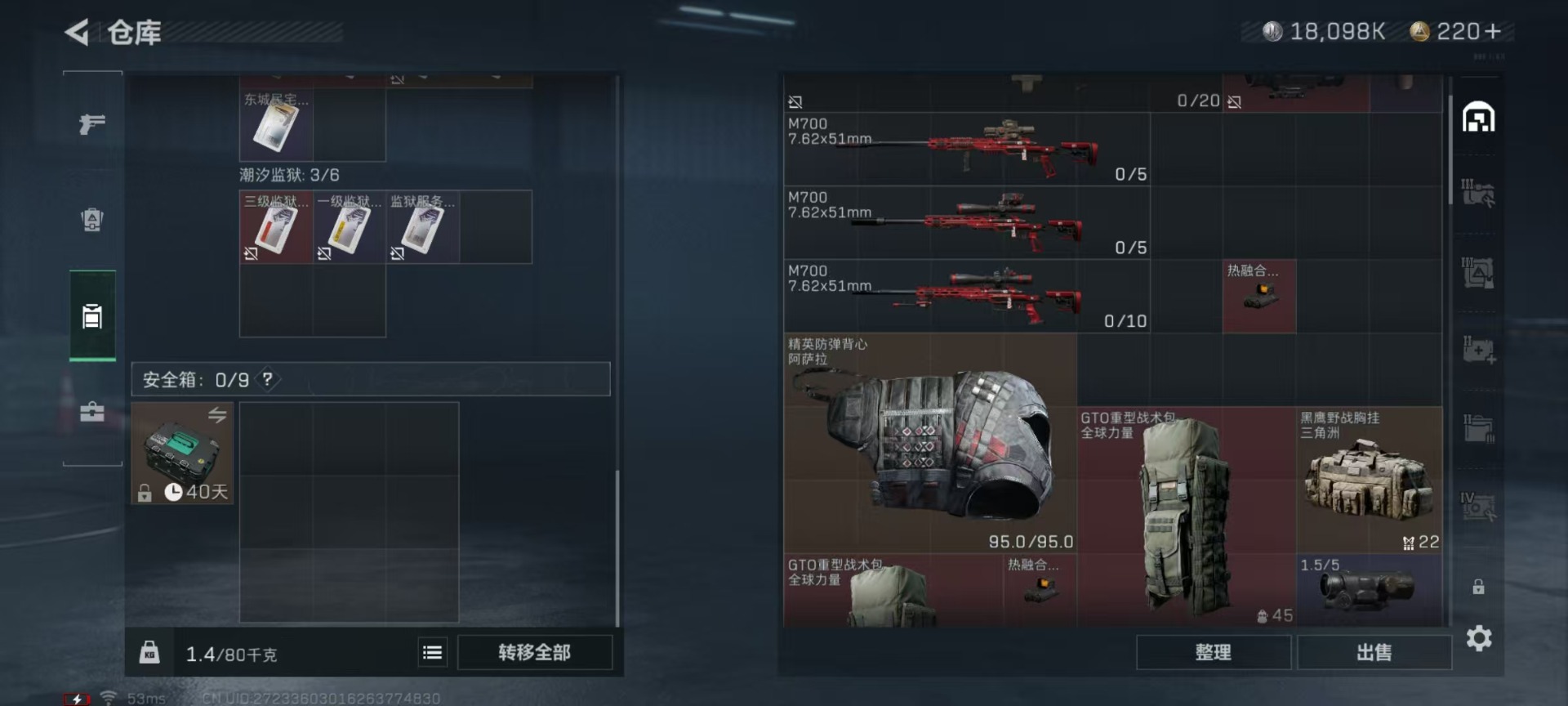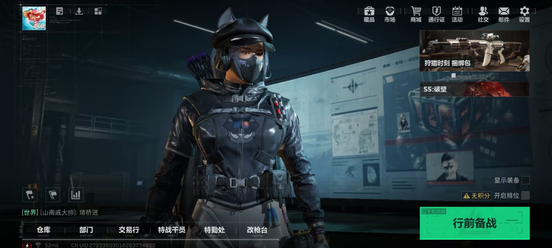 [11600795]总资产:75.8 1干员外观 4传说枪械 顶级安全箱(3×3)9.15号到期 可二次 可修改实名 烽火地带段位:黑鹰 全面战场段位:上等兵 哈夫币:18.098 传说武器皮肤:AK-12突击步枪-夜鹰,复合弓-黑-天际线,CAR-15突击步枪-阿米娅,725双管霰弹枪-送葬人-无题密令 史诗武器皮肤:SR-3M紧凑突击步枪-荒野求生,SVD狙击步枪-荒野求生,腾龙突击步枪-无垢,MP7冲锋枪-无垢 干员外观:露娜-黑·天际线