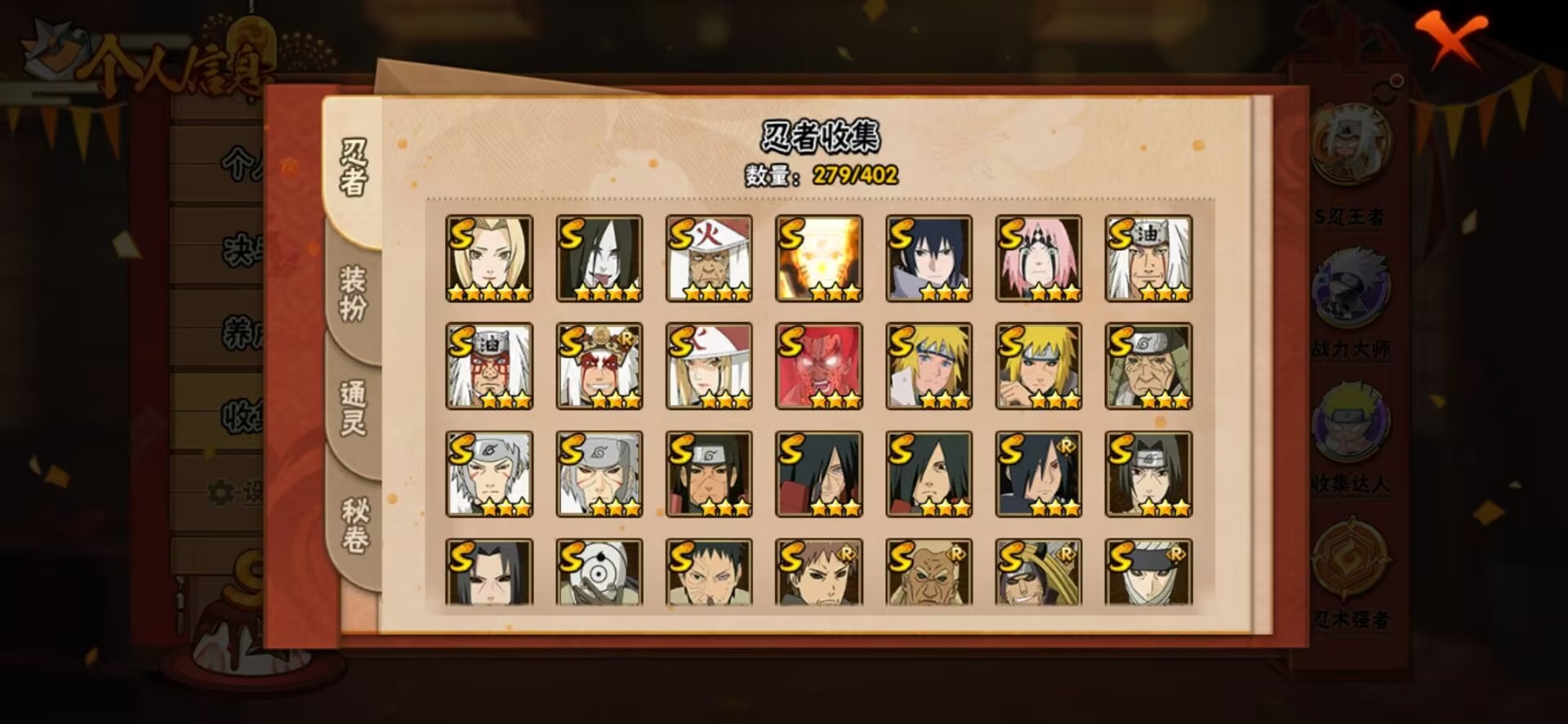 - [12047648]V9 7S忍 12A忍 13通灵 548.2W战力 可二次 可修改实名 优质装备:宇智波斑 「木叶创立」,迈特凯「死门」 S级忍者:自来也 「舞之豪杰」,宇智波鼬 「须佐能乎」,佩恩「天道」,波风水门,大蛇丸