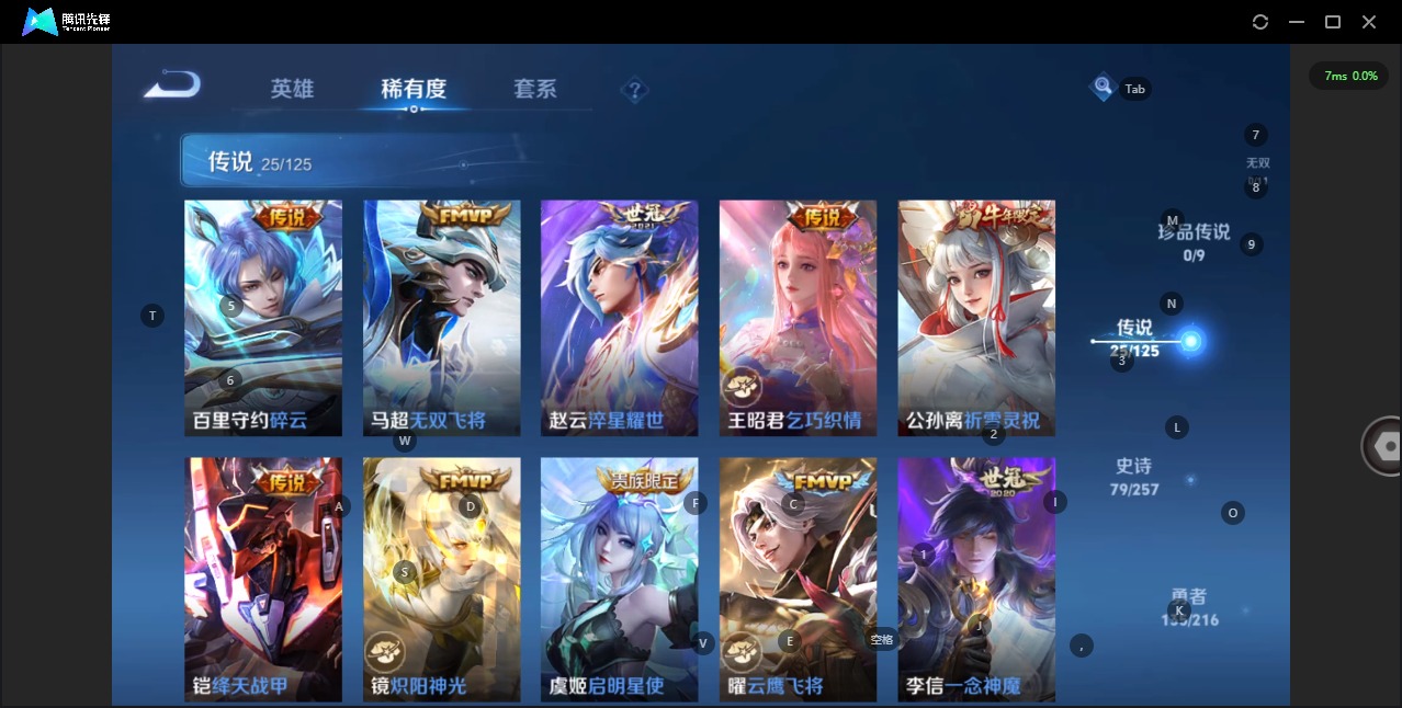 - [11471472]V7 1典藏 16传说 116英雄 215皮肤 可修改实名 优质装备:全息碎影(猴子典藏),黄金狮子座,黄金射手座,云鹰飞将(小将军),绛天战甲(鸡嘴战神),黄金白羊座,猫影幻舞,久胜战神,一念神魔,末日机甲-孙尚香(绿蚂蚱),地狱火,零号·赤焰,地狱之眼 珍宝阁皮:蔷薇恋人 限定皮:至尊宝,凤求凰(白切鸡),太华(伽罗年限),时之彼端,白晶晶,时雨天司(水龙头),神威(电光马子),飞衡(韩信年限),玄嵩(庄周年限),遇见飞天,幽恒(沐浴露),武圣,天狼运算者,梁祝,御风骁将(吕布年限),岱宗(典韦年限),天狼溯光者,虎魄,天狼绘梦者,李小龙,如梦令-嫦娥,如梦令-后羿,霸王别姬-虞姬,孙行者,大圣娶亲,青春决赛季,冰霜恋舞曲,神奇女侠 史诗皮:遇见神鹿,紫霞仙子,电玩小子(小书包),白龙吟,特工魅影,千年之狐,偶像歌手,白蛇,暗夜猫娘,无限星赏官,晚萤,冰冠公主,青蛇,时之恋人-孙尚香,修罗,水果甜心,天才门将,星夜王子,时之奇旅-安琪拉,功夫厨神,暗隐猎兽者,幽灵船长,鬼剑武藏,地狱岩魂,纤云弄巧,繁星吟游(呼啦呼啦),拒霜思,乘风破浪,逐浪之夏,曙光守护者,箭羽风息,金属风暴,鹰眼统帅,魅力维加斯