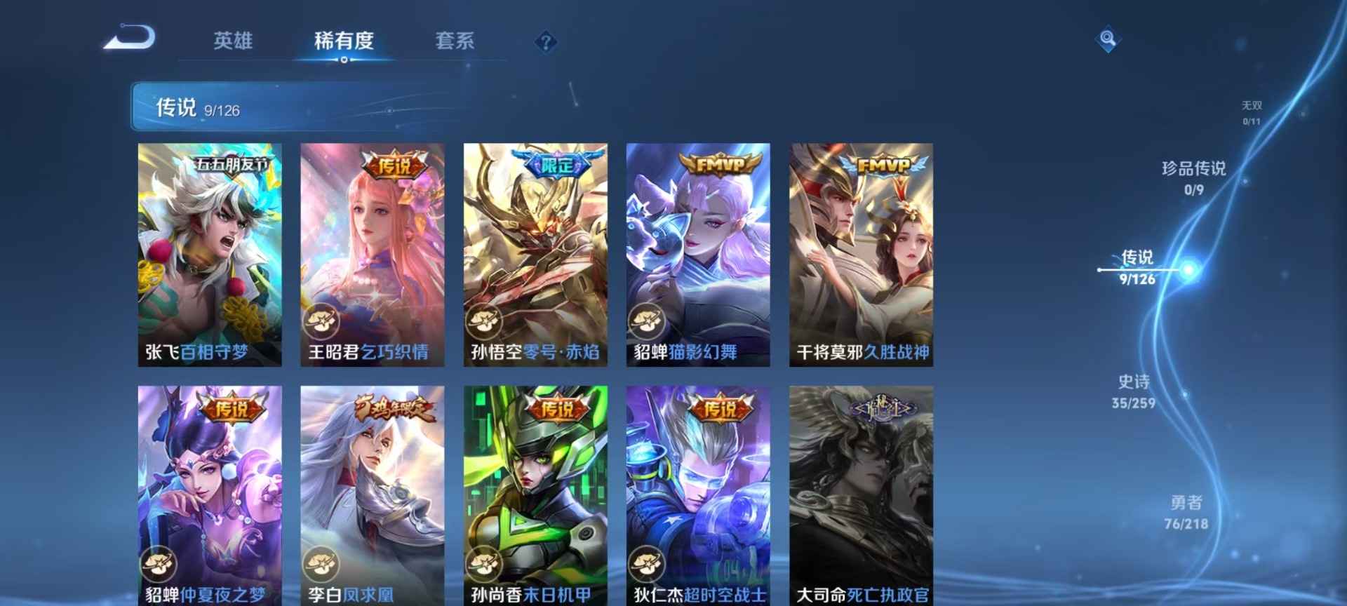 - [11471623]V7 1典藏 8传说 125英雄 271皮肤 可修改实名 优质装备:弑枪猎影(韩信典藏),冠军飞将,一念神魔,地狱之眼,碎云,山海·苍雷引(电光曜子),涂山容容 传说皮:九山相柳 珍宝阁皮:万物之道,优雅恋人,玩趣恶龙 限定皮:愿照·九州拓(澜年限),鸣野蒿,傲雪梅枪,高山流水,降魔,五谷丰年,青龙志(铠年限),梁祝,天狼溯光者,逐梦之影,如梦令-后羿,圣诞老人,猪悟能,匿光追影者,山海·玄木吟(马可年限) 史诗皮:鸭鸭历险记-刘禅,化蝶舞,灵蛊蚀心,星界战将,龙之律动,石田雨龙,蒙犽顽岩魄,琥珀纪元伽罗,百相守梦-黄忠,紫霞仙子,电玩小子(小书包),黄金分割率,特工魅影,千年之狐,江河有灵,雪夜绮愿(周瑜),百解令(蒙犽),高渐离燃音魔法,蒙恬荣光圣徽,无限星赏官,偶像歌手,电玩·爆裂旋风,银翎春语,龙骑士(小龙虾),末日机甲-吕布,猫狗日记-孙策,节奏热浪,修罗,女仆咖啡,摇滚巨星,水果甜心,星夜王子,心灵骇客,功夫厨神,德古拉伯爵,暗隐猎兽者,幽灵船长,鬼剑武藏,暗渊魔法,心灵战警,乐园奇幻夜,天秀·启明,舞动绿茵,地狱岩魂,纤云弄巧,拒霜思,乘风破浪,逐浪之夏,月团寄思,水晶猎龙者,曙光守护者,金属风暴,原初追逐者,圣诞狂欢,圣诞恋歌,鹰眼统帅,王者之锤,魅力维加斯,无心,未来纪元-赵云