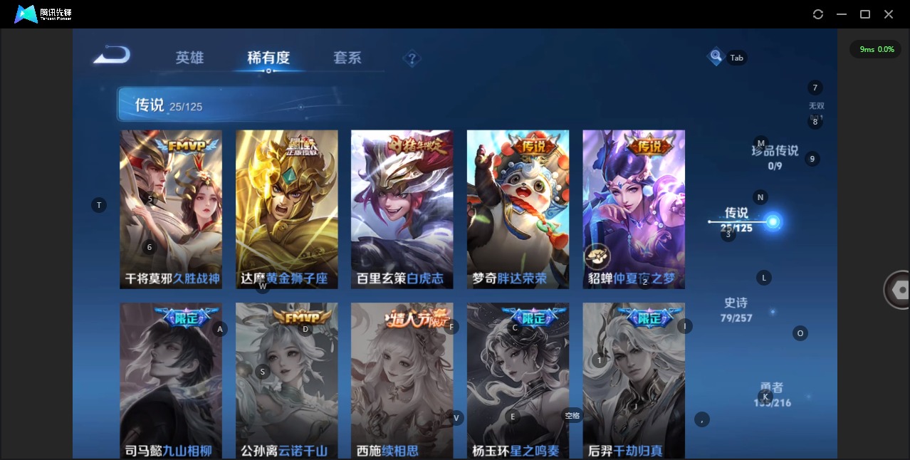 - PX_2063020-安卓V 【可二次】 英雄数量:124 皮肤数量:376 贵族等级:贵族V9 传说数量:0 【星传说 未来机甲 幽冥火 星际治安官】荣耀典藏2 传说品质25 史诗品质107鸣剑曳影 弑枪猎影 李逍遥 白虎志 凤求凰 祈雪灵祝 花朝如约 猫影幻舞 记忆之芯 云霓雀翎 云鹰飞将 时雨天司 深海之息 无双飞将 淬星耀世 寅虎赤拳 武圣 炽阳神光 末日机甲女 异界灵契 枫霜尽 启明星使