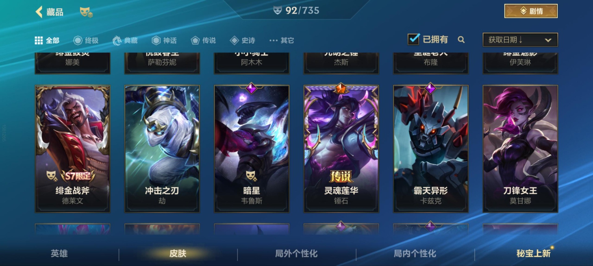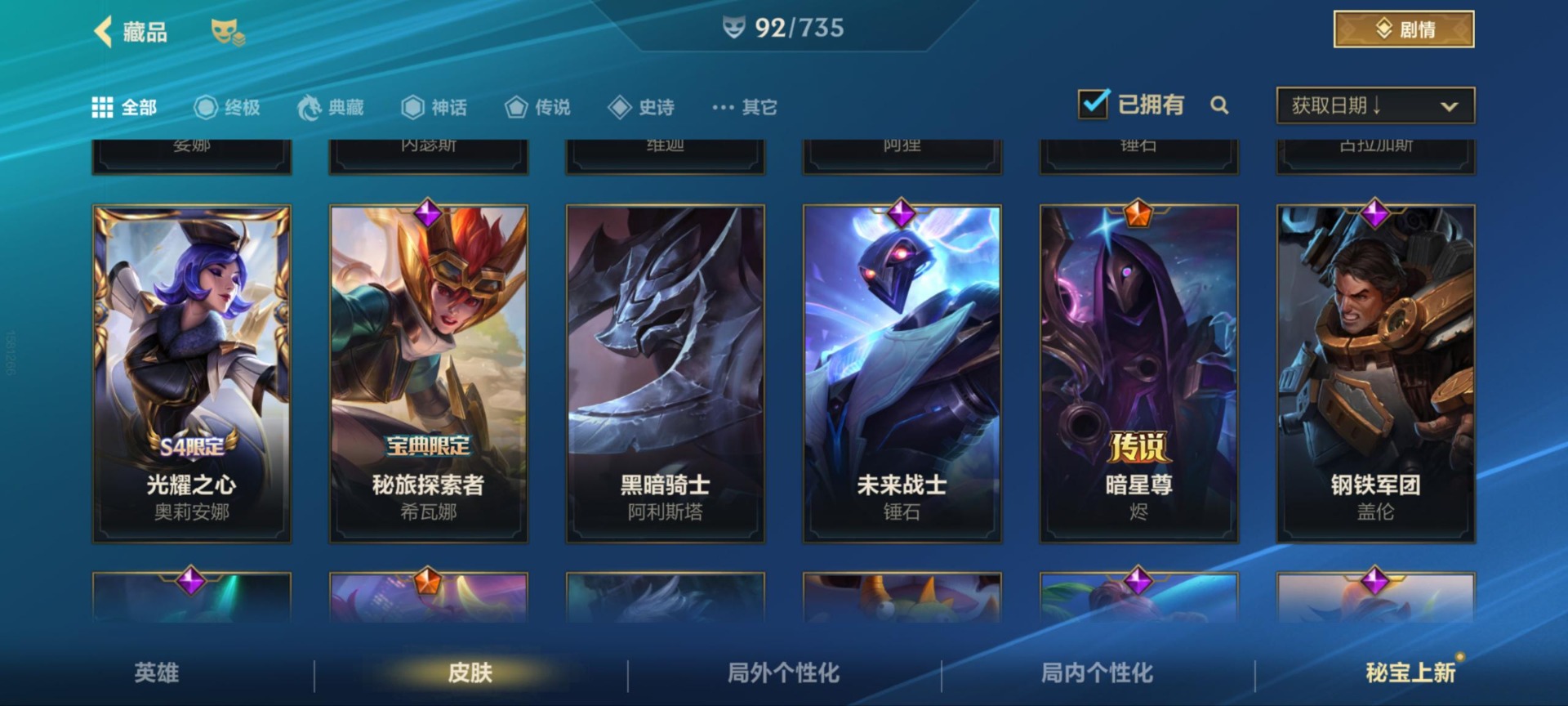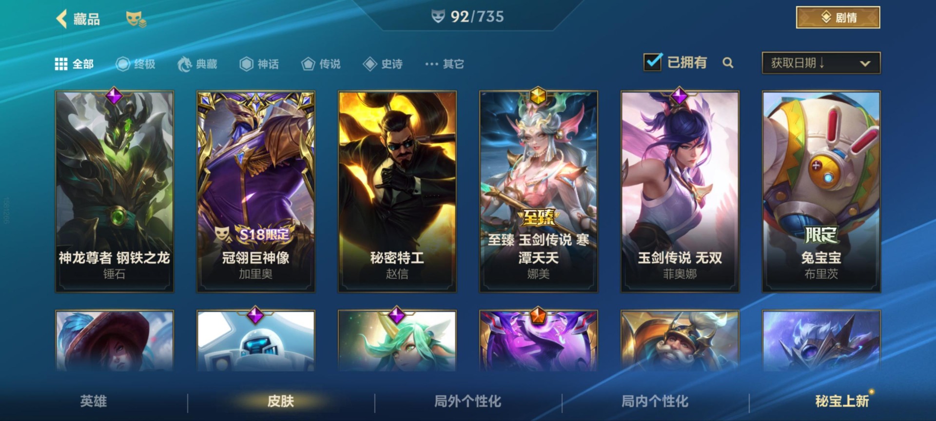 [11601257]可二次 可修改实名 2神话 8传说 32史诗 92皮肤 107英雄 翡翠 皮肤:锤石-神龙尊者 钢铁之龙,锤石-灵魂莲华,锤石-未来战士,锤石-西部魔影,锤石-暗星,菲奥娜-绯金丽刃,菲奥娜-福牛守护者,菲奥娜-玉剑传说 无双,菲奥娜-泳池派对,菲奥娜-皇家守卫,阿利斯塔-福牛守护者,阿利斯塔-海克斯科技,阿利斯塔-黑暗骑士,阿利斯塔-哞利斯塔,娜美-至臻 玉剑传说 寒潭夭夭,娜美-绯金鲛灵,娜美-源代码,娜美-河水之灵,萨勒芬妮-碧空长歌,萨勒芬妮-悦鼓春生,萨勒芬妮-K/DA ALL OUT,布里茨-兔宝宝,布里茨-苹果机器人,奥拉夫-猎龙勇士,奥拉夫-黑暗骑士,艾希-王牌司令,艾希-神龙尊者 苍龙,阿木木-小小骑士,阿木木-殇之机器人,厄运小姐-福牛守护者,厄运小姐-西部牛仔,内瑟斯-单身贵族,内瑟斯-创世魔神,凯南-超武乾坤:电弧,凯南-奈落之炎,奥莉安娜-光耀之心,奥莉安娜-暗星,菲兹-欧米伽小队 鬼影蛙人,菲兹-银河魔装机神,卡兹克-死亡绽放,卡兹克-霸天异形,蔚-双城之战,蔚-女警官,布隆-龙冕御盾,布隆-圣诞老人,希瓦娜-秘旅探索者,希瓦娜-冰霜亚龙,韦鲁斯-暗星,韦鲁斯-苍穹之光,娑娜-缪斯女神,娑娜-五连摇滚键盘手,烬-龙冕异士,烬-暗星尊,提莫-熊猫,提莫-兔宝宝,索拉卡-源代码,索拉卡-星之守护者,蕾欧娜-烧烤女神,蕾欧娜-月蚀骑士,安妮-福牛守护者,安妮-小红帽,劫-死亡誓约,劫-冲击之刃,杰斯-光明之锤,璐璐-光耀之灵,凯尔-末世天使,莫甘娜-刀锋女王,迦娜-暴风女神,崔丝塔娜-娜就去看看,加里奥-风执事,伊泽瑞尔-冰川勇者,奥瑞利安·索尔-灰烬领主,辛吉德-炼金狂士,慎-腥红之月 鬼武者,雷克顿-枯萎之壤,维迦-穿着正装的恶魔,阿狸-偶像歌手,赛娜-西部天使,金克丝-双城之战,古拉加斯-碎桶者,嘉文四世-福牛守护者,赵信-秘密特工,孙悟空-三昧真火,格雷福斯-战斗教授,伊芙琳-绯金魅影,努努和威朗普-脏兮兮,雷恩加尔-暗黑武士,盖伦-钢铁军团,易-神龙尊者 驭风啸龙,德莱文-绯金战斧,德莱厄斯-福牛守护者