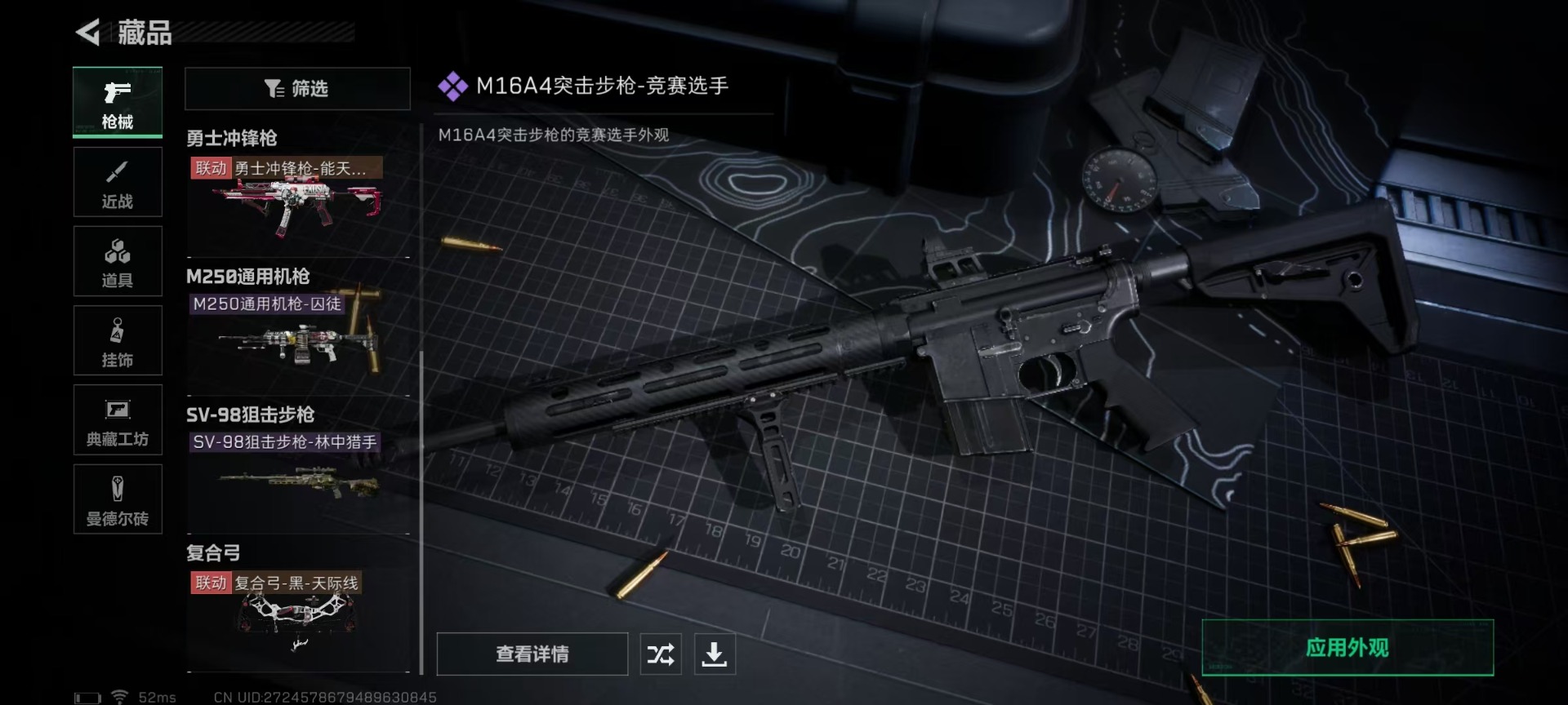 - [11879806]总资产:258.6 2干员外观 11传说枪械 顶级安全箱(3×3)9.15号到期 可二次 可修改实名 烽火地带段位:黑鹰 全面战场段位:列兵 哈夫币:14.839 传说武器皮肤:AS Val突击步枪-蛇年祥瑞,SR-25射手步枪-水墨云图,SCAR-H战斗步枪-铁艺苍穹,AK-12突击步枪-夜鹰,复合弓-黑-天际线,CAR-15突击步枪-阿米娅,725双管霰弹枪-送葬人-无题密令,M7战斗步枪-维京,M7战斗步枪-怜悯,M4A1突击步枪-蚀金玫瑰,M7战斗步枪-神秘艺术 干员外观:红狼-蚀金玫瑰,露娜-黑·天际线