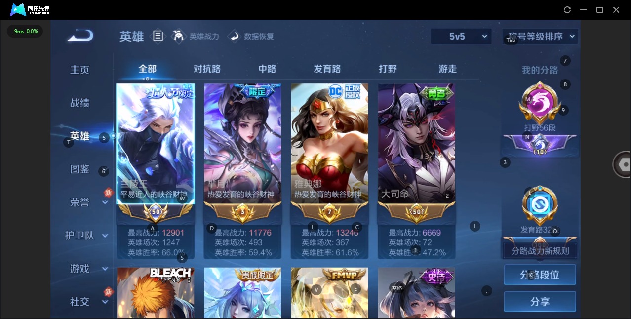 - [11818771]V6 1珍品传说 5传说 85英雄 81皮肤 可修改实名 女号 优质装备:黑崎一护,黄金狮子座,地狱之眼,涂山容容 传说皮:幻光神枪 限定皮:愿照·九州拓(澜年限),逐霄战戟,鸣野蒿 史诗皮:鸭鸭历险记-刘禅,化蝶舞,龙之律动,百相守梦-周瑜,茶境仙,百相守梦-百里守约,百相守梦-黄忠,紫霞仙子,千年之狐,无限星赏官,节奏热浪,水果甜心,鬼剑武藏,暗渊魔法,心灵战警,舞动绿茵,水晶猎龙者,曙光守护者,圣诞恋歌,鹰眼统帅,魅力维加斯