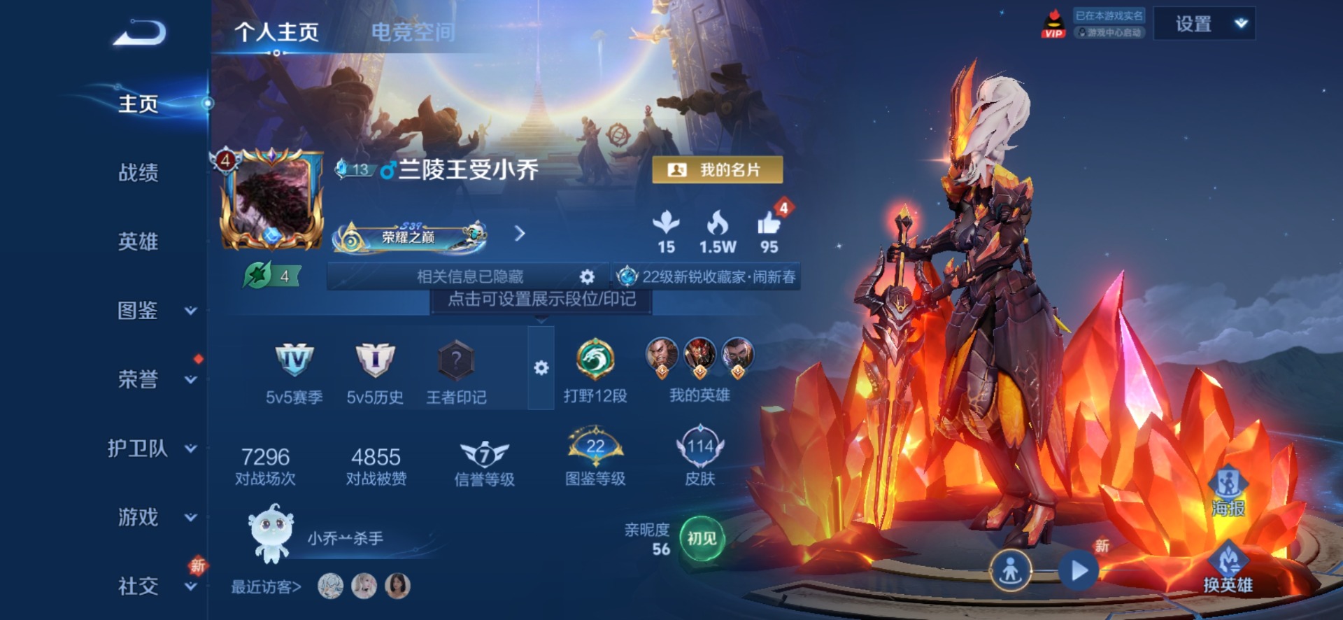 - [11624725]V6 2典藏 5传说 123英雄 283皮肤 可修改实名 优质装备:幻阙歌(貂蝉典藏),最初的交响(伽罗典藏),黄金射手座,云鹰飞将(小将军),仲夏夜之梦(大飞蛾) 传说皮:幻光神枪 珍宝阁皮:女武神,玩趣恶龙 限定皮:逐霄战戟,鸣野蒿,遇见飞天,高山流水,五谷丰年,李小龙,圣诞老人,猪悟能 史诗皮:星界战将,破空之剑,蔬乡物语(鲁班七号),电玩小子(小书包),黄金分割率,特工魅影,千年之狐,江河有灵,雪夜绮愿(周瑜),百解令(蒙犽),高渐离燃音魔法,蒙恬荣光圣徽,冰冠公主,偶像歌手,电玩·爆裂旋风,龙骑士(小龙虾),末日机甲-吕布,猫狗日记-孙策,猫狗日记-大乔,乱世虎臣,节奏热浪,摇滚巨星,水果甜心,绅士熊喵,天才门将,星夜王子,心灵骇客,功夫厨神,德古拉伯爵,暗隐猎兽者,幽灵船长,鬼剑武藏,心灵战警,天秀·启明,舞动绿茵,缤纷独角兽,乘风破浪,逐浪之夏,月团寄思,水晶猎龙者,曙光守护者,箭羽风息,金属风暴,原初追逐者,圣诞狂欢,圣诞恋歌,鹰眼统帅,魅力维加斯,黎明之约,无心,未来纪元-赵云,玫瑰异探