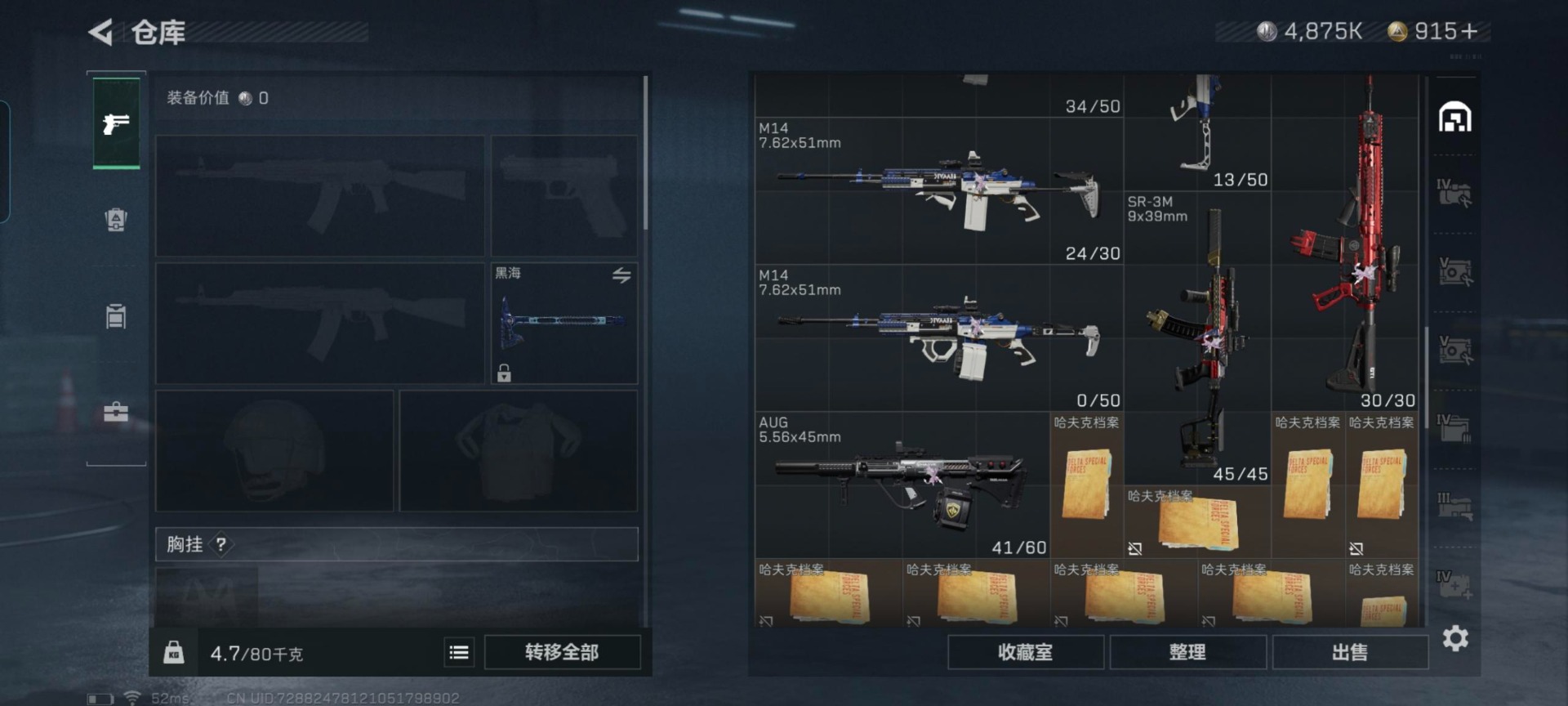 [11601474]总资产:307.5 2干员外观 1近战传说 13传说枪械 可二次 可修改实名 烽火地带段位:黑鹰 全面战场段位:军士长 哈夫币:4.875 传说武器皮肤:近战-黑海,AS Val突击步枪-蛇年祥瑞,SR-25射手步枪-水墨云图,SCAR-H战斗步枪-铁艺苍穹,AK-12突击步枪-夜鹰,SMG45冲锋枪-骑士,QJB201轻机枪-黑海,MP5冲锋枪-黑海,M7战斗步枪-维京,M4A1突击步枪-蚀金玫瑰,P90冲锋枪-神秘艺术,QBZ95-1突击步枪-破军,M7战斗步枪-神秘艺术 干员外观:红狼-蚀金玫瑰,牧羊人-街头之王