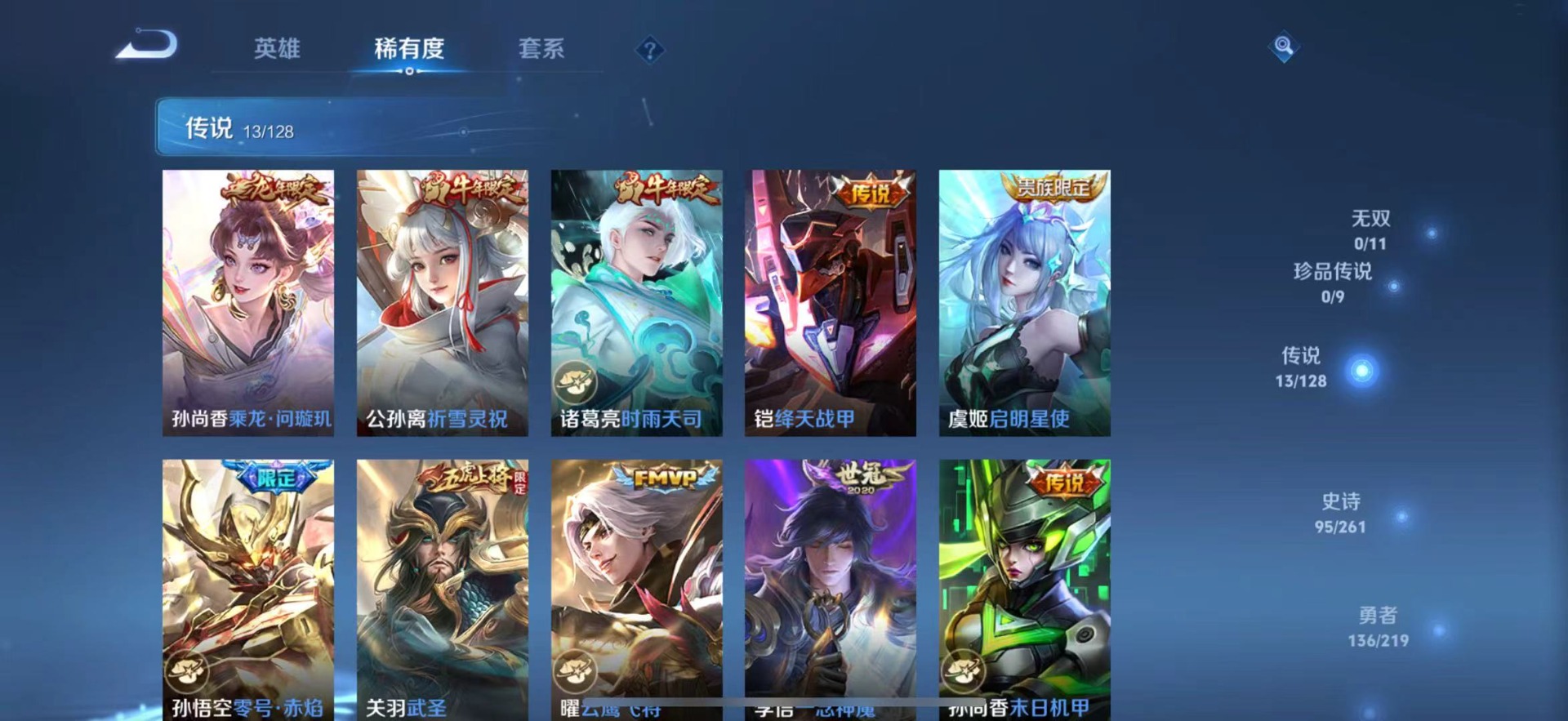 [11601489]V8 2典藏 13传说 126英雄 306皮肤 典藏英雄武则天 可修改实名 优质装备:全息碎影(猴子典藏),最初的交响(伽罗典藏),云鹰飞将(小将军),绛天战甲(鸡嘴战神),一念神魔,末日机甲-孙尚香(绿蚂蚱),地狱火,零号·赤焰,海洋之心,超时空战士-狄仁杰 传说皮:乘龙·问璇玑(孙尚香年限) 珍宝阁皮:蔷薇恋人,女武神,玩趣恶龙 限定皮:白晶晶,时雨天司(水龙头),高山流水,五谷丰年,冰锋战神,武圣,天狼运算者,梁祝,御风骁将(吕布年限),逐梦之星,天狼溯光者,奔雷神使(牛魔年限),祈雪灵祝(雪兔子),李小龙,霸王别姬-项羽,霸王别姬-虞姬,奇迹圣诞,孙行者,猪悟能,大圣娶亲,青春决赛季,冰霜恋舞曲,神奇女侠,女儿国国王 史诗皮:绮世丹青,化蝶舞,灵蛊蚀心,龙之律动,雪豹·霜爪,布丁狗之誓,茶境仙,紫霞仙子,苍穹之光,电玩小子(小书包),白龙吟,黄金分割率,特工魅影,千年之狐,百解令(蒙犽),高渐离燃音魔法,无限星赏官,冰冠公主,暗夜猫娘,龙骑士(小龙虾),末日机甲-吕布,猫狗日记-孙策,乱世虎臣,节奏热浪,女仆咖啡,摇滚巨星,水果甜心,绅士熊喵,天才门将,星夜王子,心灵骇客,功夫厨神,德古拉伯爵,暗隐猎兽者,幽灵船长,鬼剑武藏,心灵战警,舞动绿茵,地狱岩魂,纤云弄巧,繁星吟游(呼啦呼啦),拒霜思,缤纷独角兽,乘风破浪,逐浪之夏,水晶猎龙者,曙光守护者,箭羽风息,金属风暴,圣诞狂欢,圣诞恋歌,鹰眼统帅,暗夜贵公子,魅力维加斯,奇遇舞章,未来纪元-赵云